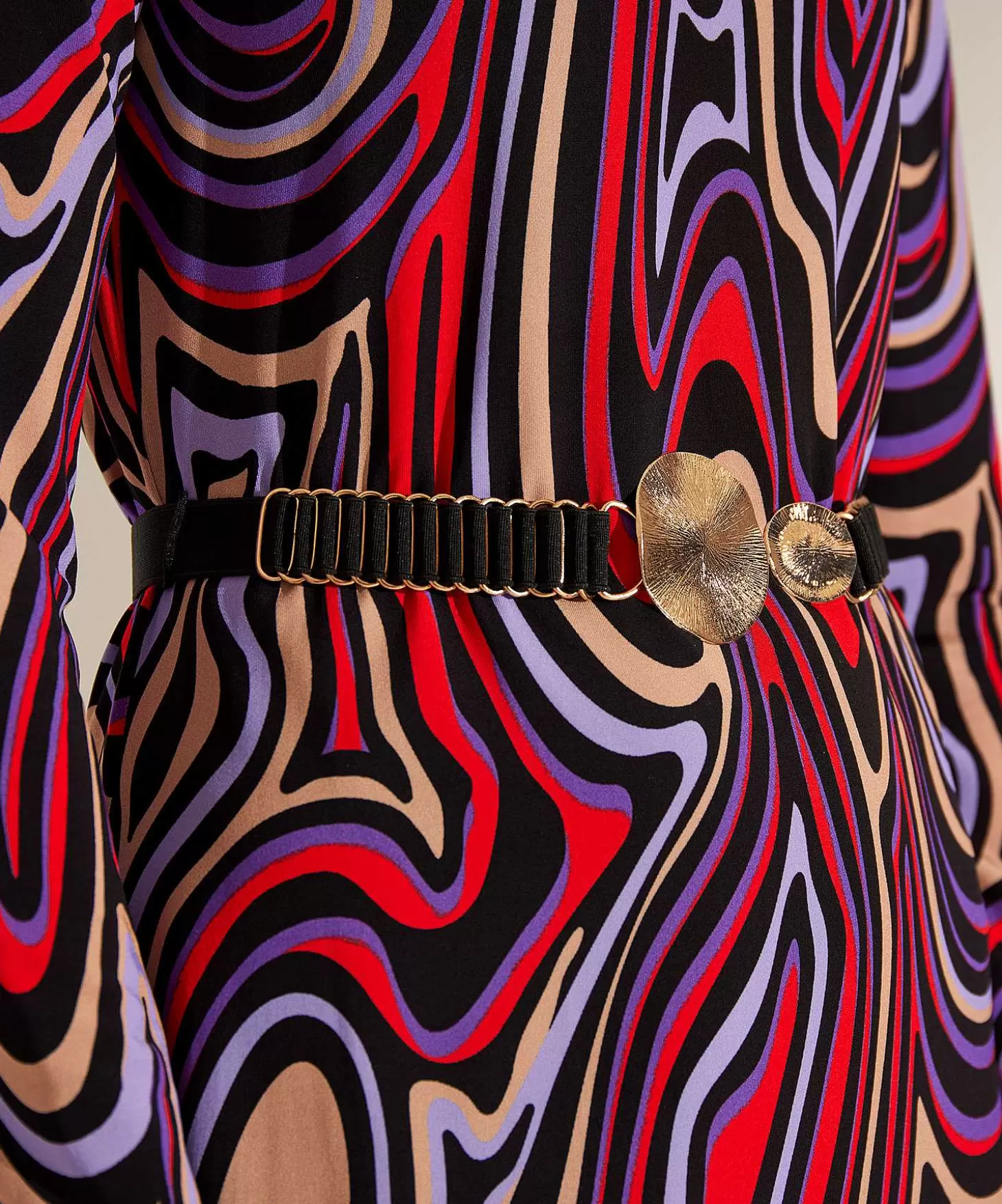 Slinky & Swirly Wil Deze Ana Alcazar Met Jou Op Fashionavontuur. Zie Je Haar Psychedelische Swirlprint En Voel Je Haar Soepele Slinky Materiaal? In Een Rechte Fit Met Afneembare Elastische Riem Met Witgoudkleurige Gesp Creëer Je Direct Een Taille. In Een Opvallend Kleurpalet Van Rood, Zwart, Licht- En Donkerpaars En Zand En ‘Swirl’ Lijnenspel Kan Niemand Om Jou Heen. Dit Feestelijke Jurkje Valt Over De Knie En Je Draagt Haar Met High Heels Of Laarsjes. Met Ceintuur. Samenstelling: 91% Viscose, 9% Elastan. Onderjurk: 94% Polyester, 6% Elastan.