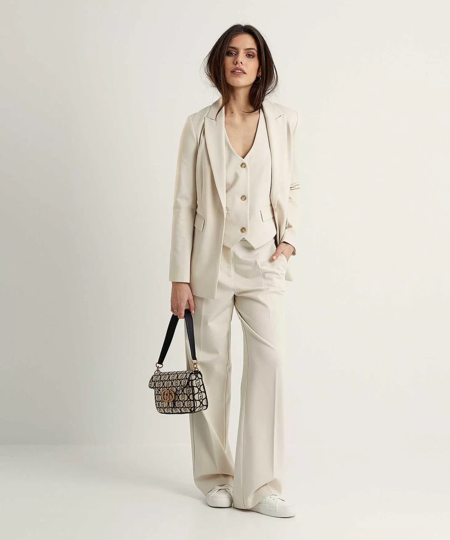 In Stevige Maar Stretchy Jersey Is Dit Beaumont Gilet Absoluut Office- En Partyproof. Zie Je Haar Klassieke Aansluitende Fit En Neutrale Kiezelkleur? Met Haar Figuurnaden, Knoopsluiting, (Fake) Klepzakjes En Puntige Voorpandjes En Korter Achterpand, Geeft Ze Elke Outfit Classic Vibes. Je Draagt Haar Met Een Streepshirt En De Matching Beaumont Wide Leg Broek + Loafers Of Sneakers. En Wat Dacht Je Van Gecombineerd Met Een Blouse En Beaumont Blazer + Broek En High Heels Naar Kantoor Of Een Feestje? Parker Is A Timeless Keeper! Samenstelling: 69% Viscose, 27% Polyamide, 4% Elastan. Voering: 100% Polyester.