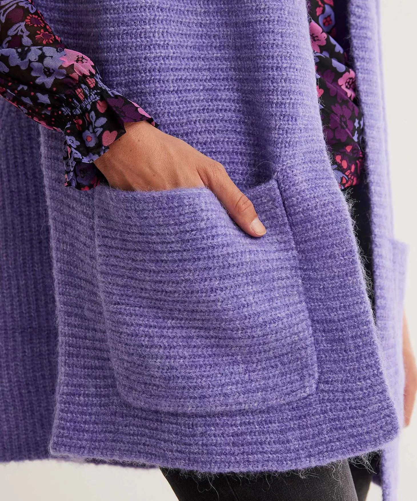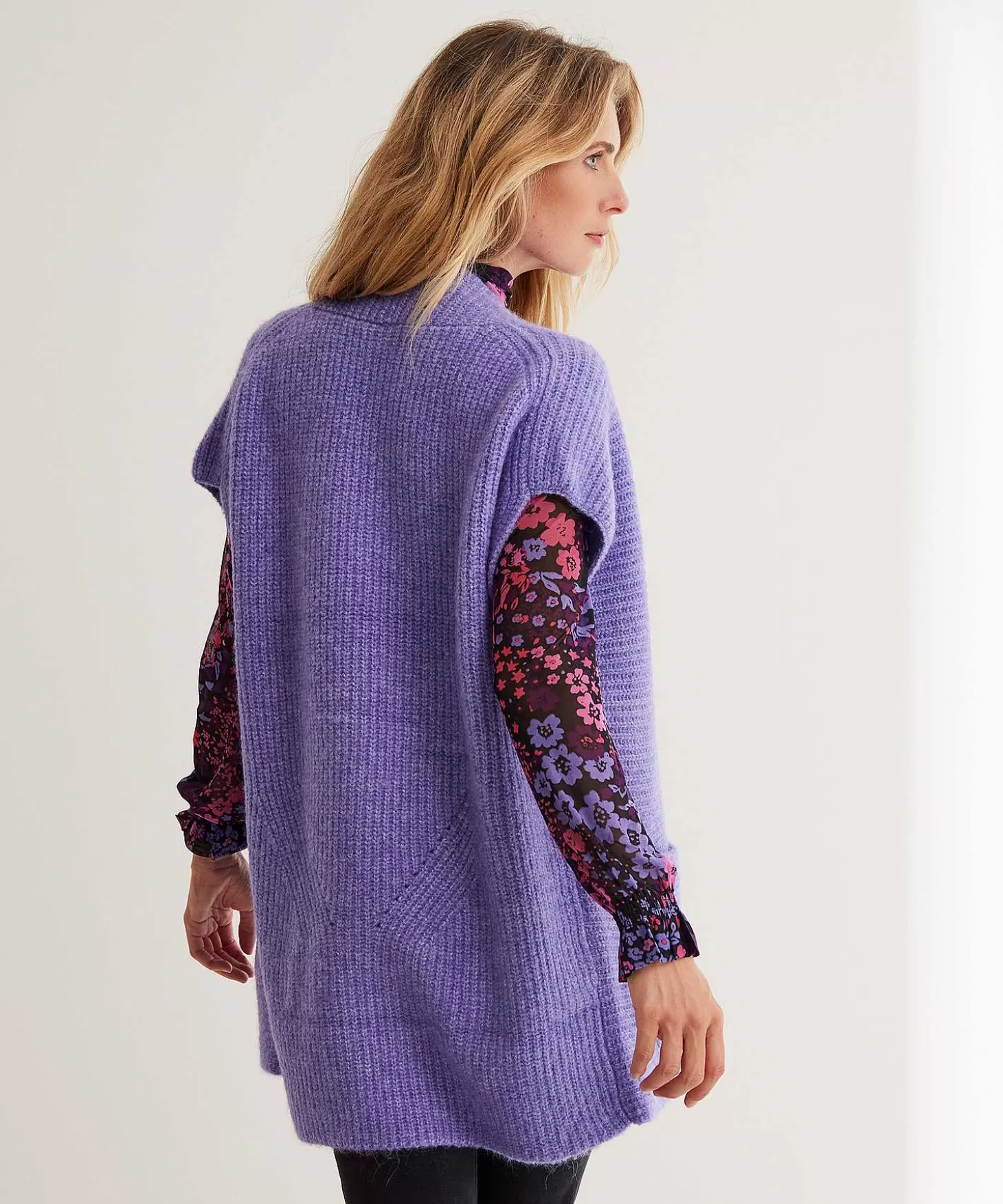 In Een Verrassend Horizontaal Gebreid Ribbreisel, Is Dit Half Lange Mouwloze Vest Uit De Najaarscollectie Van Beaumont, Uitgevoerd. De Zachte Paarse Lila Tint Gaat Ook Dit Najaar Nog Mee. Het Vest Heeft Een Fijn Kraag, Twee Steekzakken En Op Het Rugpand Een Decoratief Breisel. Draag Dit Vest Met Een Blouse Met Opvallende Mouwen, Combineer Bij Je Pantalon Met Hakken Voor Kantoor, Of Kies Voor Een Jeans Met Sneakers. Samenstelling: 51% Gerecycled Polyester, 20% Acryl, 13% Wol, 13% Alpaca, 3% Elastan.