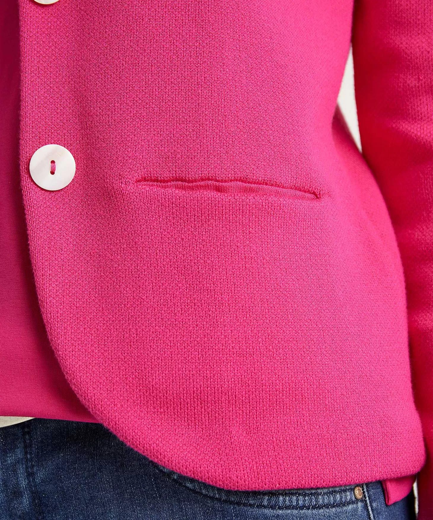 Het Blazervest Knit Draag Je Fashionable Het Jaar Rond. Voel Je Haar Zachte Breisel In Aangename Katoen En Zie Je Haar Minimalistische Ontwerp? In Stevige Maar Zachte Knit Met Opstaande Reverskraag En Kleine Praktische Zakjes Valt Dit Blazervest Aansluitend Maar Stretchy. Ze Heeft Het Voordeel Van Draaggemak Gecombineerd Met De Geklede Look Van Een Blazer(Vest). In Fuchsia, Zand + Lurex, Lichtblauw (Blue) En Koraal Is Er Altijd Een Kleurtje Naar Jouw Hart En Je Combineert Haar Met Veel. Zoals Met Een Blouse, Een Jeans En Laarsjes Op Stedentrip Of Met Een Streeptop, Een Pantalon + Loafers Op Kantoor Of Een Feestje. Samenstelling: 100% Katoen.