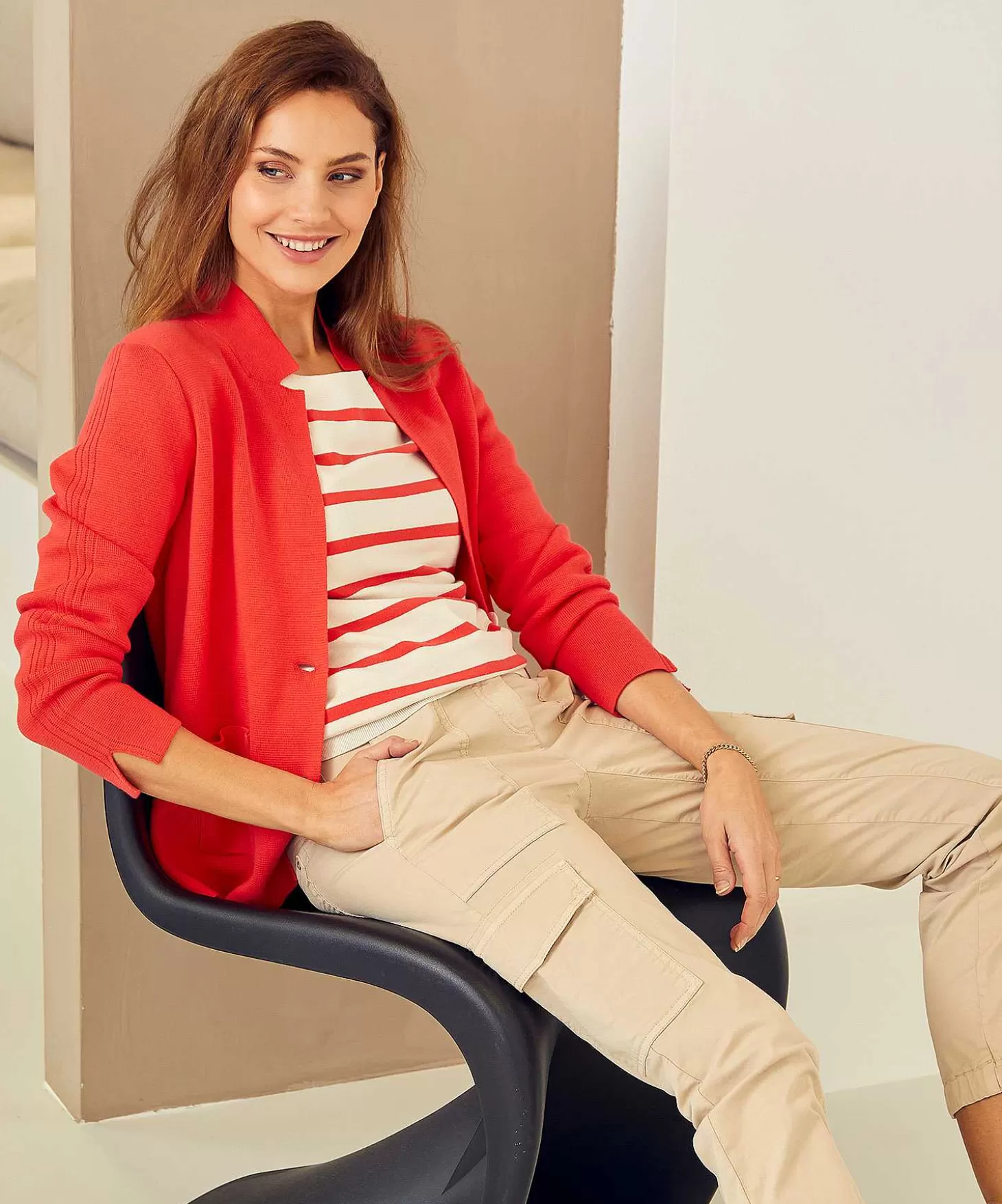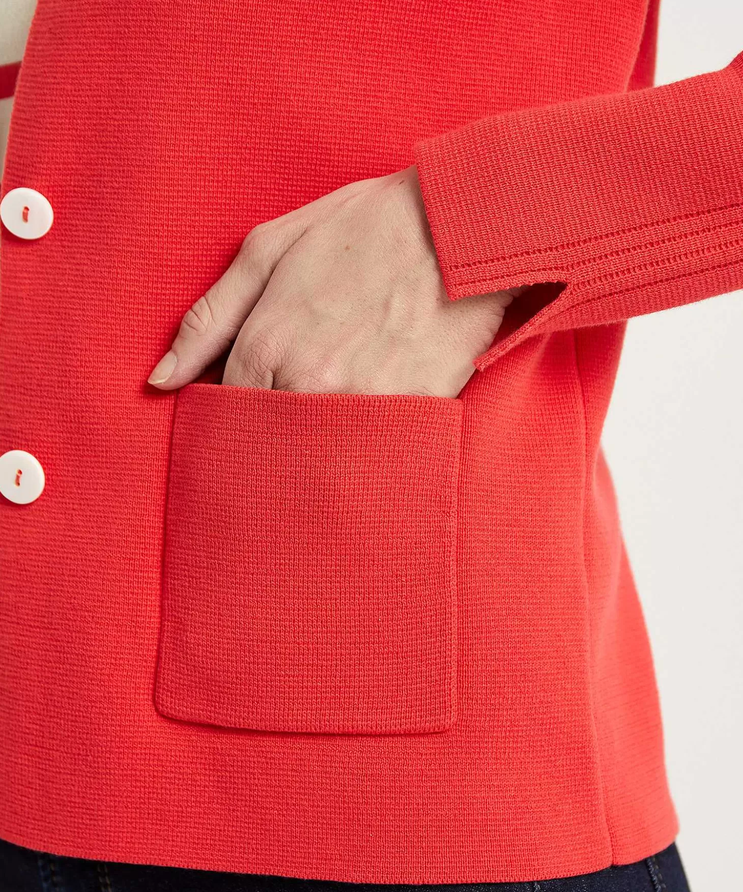 Het Blazervest In Stevige Maar Soepele Puntaknit Mag Niet In Jouw Garderobe Ontbreken. Zie Je Haar Rechte Model, Opstaande Reverskraag, Praktische Zakjes En Parelmoer Glansknopen? Langs De Mouw Naar Beneden En Verticaal Middenachter Is Ze Ook Nog Voorzien Van Een Baan In Sierbreisel En Ze Past Overal Bij. Je Draagt Dit Vest In Offwhite, (Light) Blue, Koraal, Ocean Of Marine Met Een Blouse, Pantalon En Laarsjes Naar Je Werk Of Een Feestje. En Wat Dacht Je Van Samen Met Een Mesh Colshirt, Een Jeans En Boots Op Stedentrip? Als Er Iets Een Fashionable Doordrager Is, Dan Is Het Wel Het Blazervest. Samenstelling: 100% Katoen.
