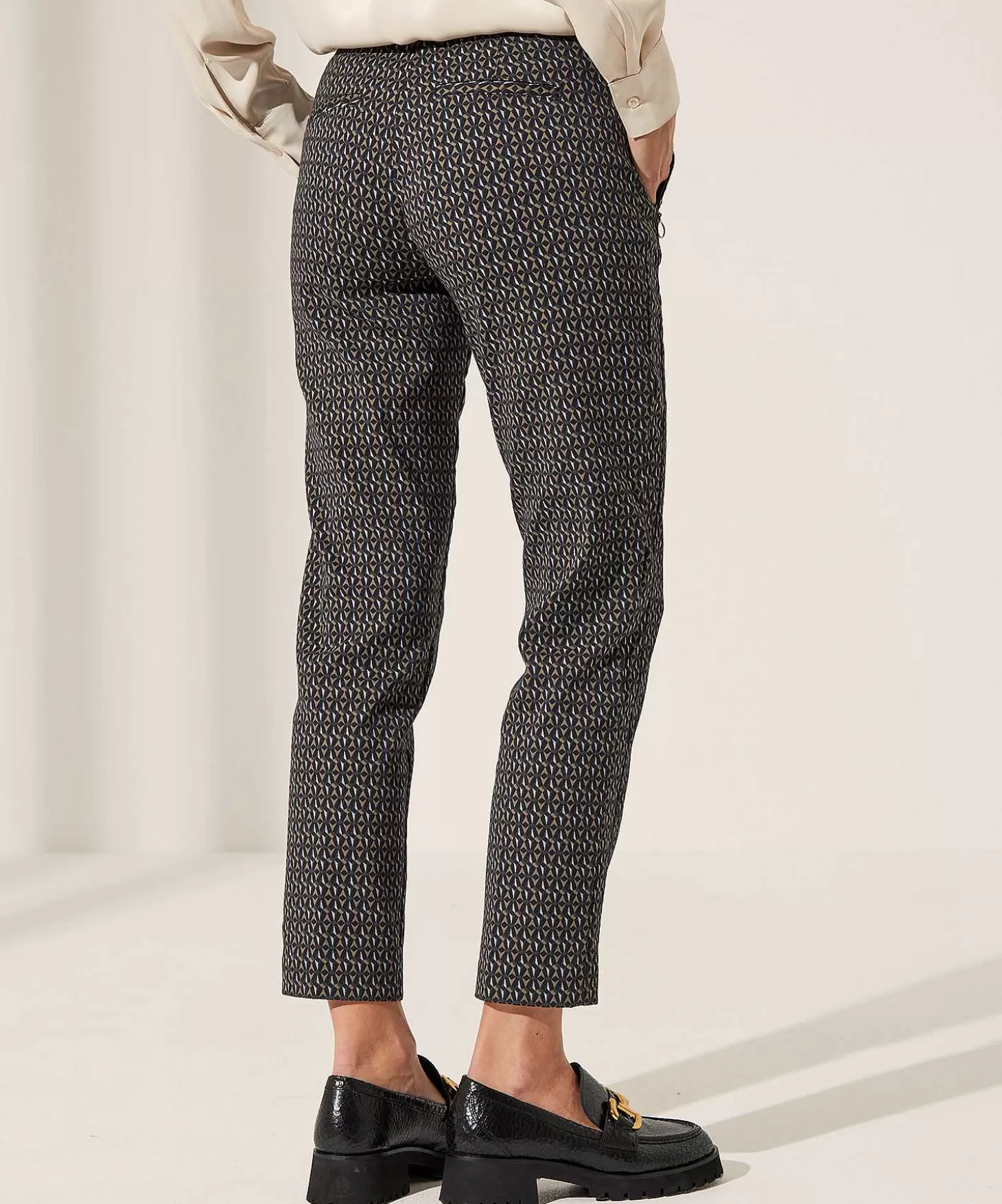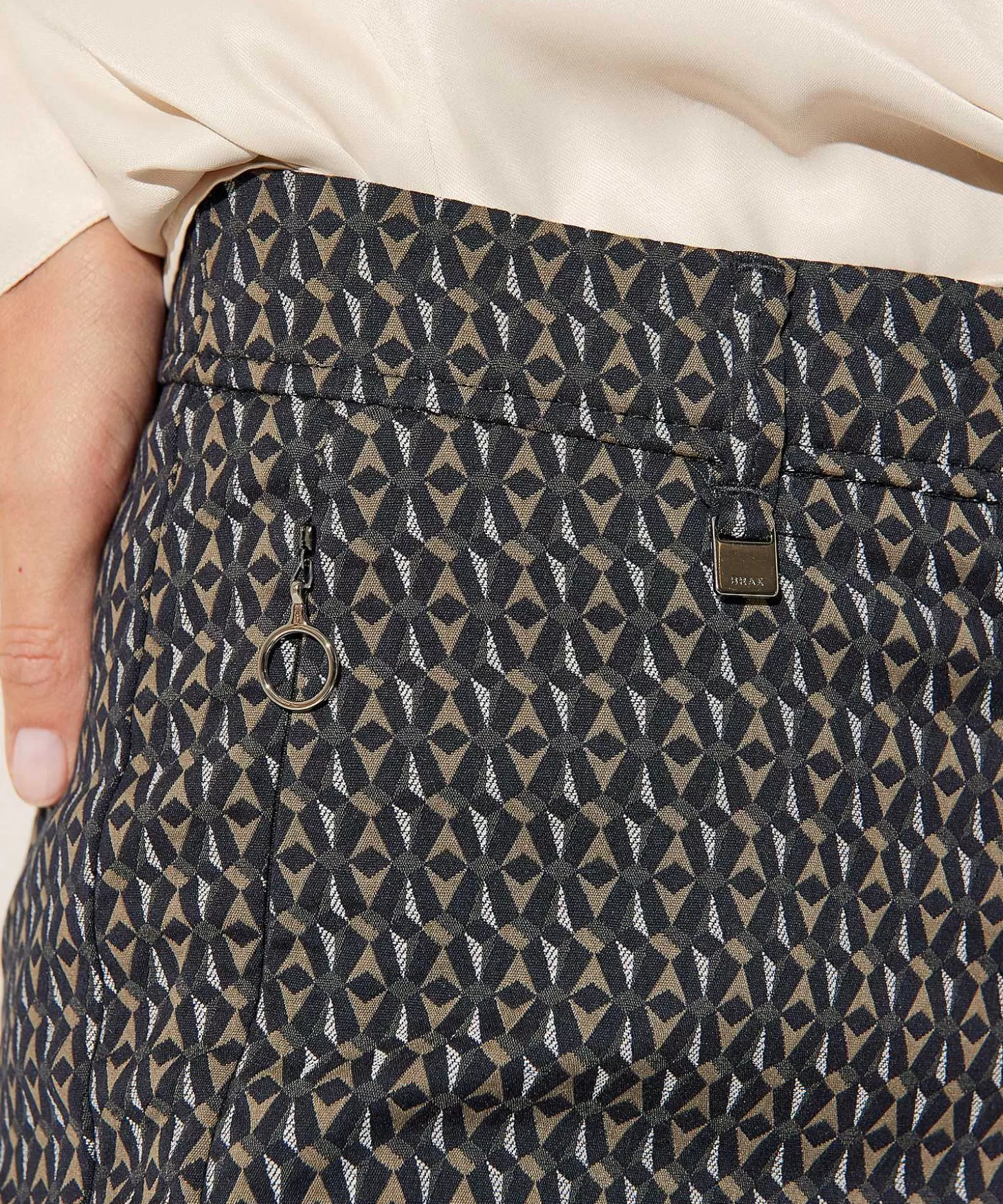 Met Grafisch Patroon En Een Regular Fit Wordt Deze Brax Broek Een Belangrijke Speler In Jouw Garderobe. Zie Je Haar Neutrale En Stijlvolle Kleurpalet In Lichtgrijs, Donkergrijs, Olijf En Zwart En Het Patroon Dat Flirt Met Eindeloze Herhaling? Met Haar Slanke Lijntje, Minimalistische Sluiting, Zakjes Met Blinde Ritsjes Een Paspelzakjes Achter Is Ze Gekleed En Praktisch Tegelijk. In Fijne Stretchkwaliteit En Met Persvouwen Voor + Een Lengte Tot Boven De Enkel Past Ze Bij Veel. Draag Haar Met Knitwear, Een Blouse + Blazer Of Colpulli Met Aarsjes, Sneakers, Boots, High Heels Of Loafers Erbij En Je Bent Overal Picture Perfect. Zeg Maar Snel Yes Tegen Maron S. Samenstelling: 61% Katoen, 35% Polyamide, 4% Elastan.
