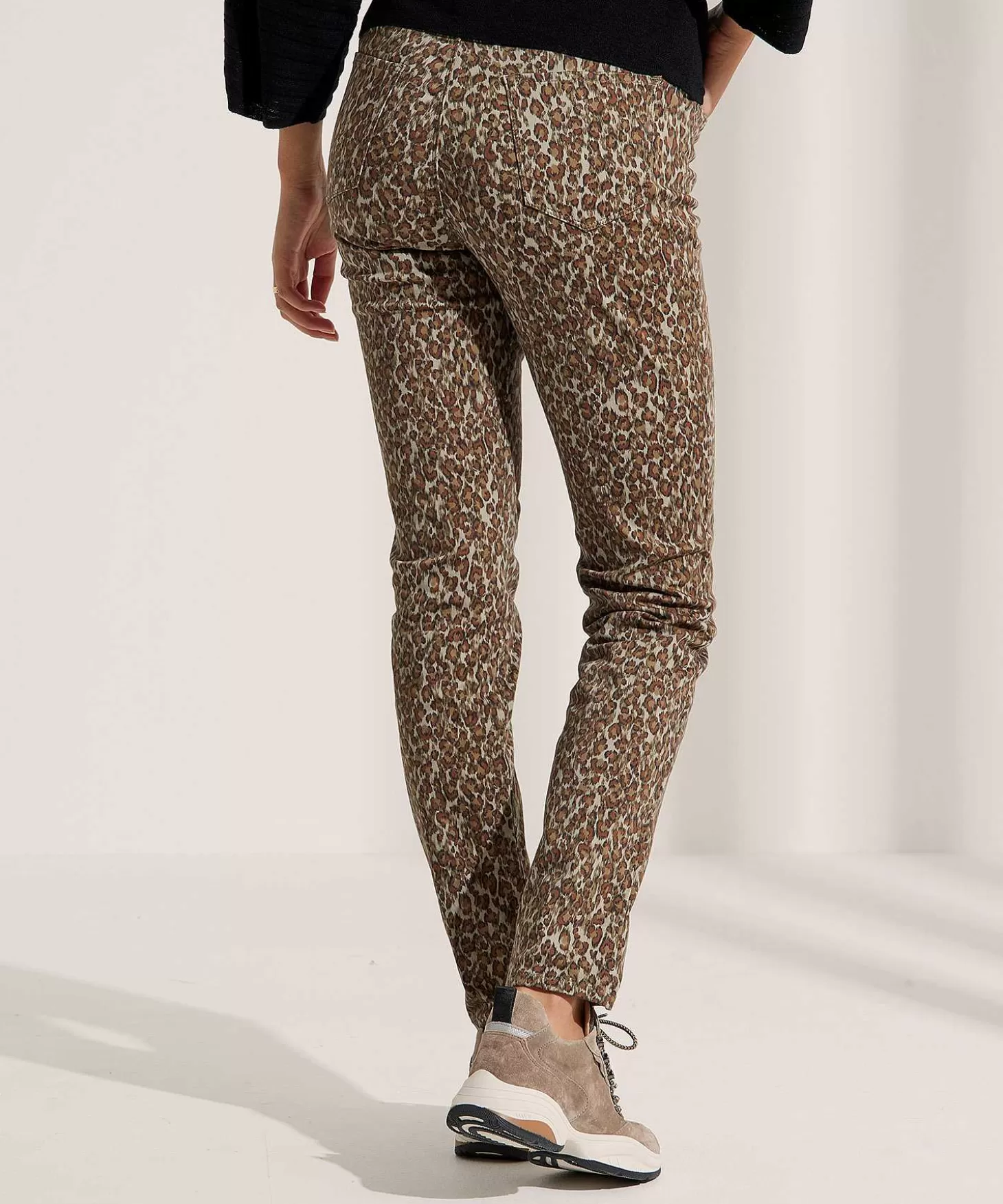 In Schilderachtige Panterprint In Bruin En Groen Op Een Vergrijsd Olijfkleurige Basis Is Deze Brax Broek Klaar Voor De …