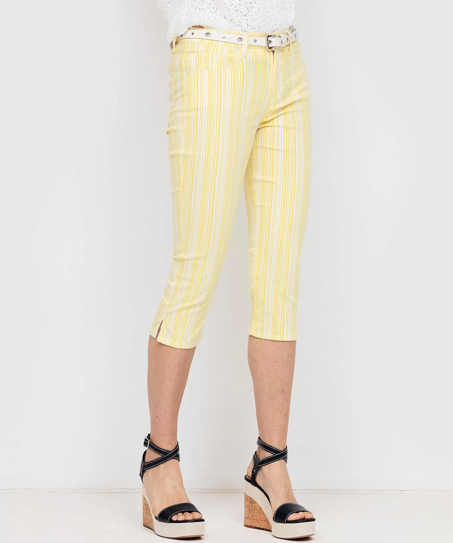 Zomerse Skinny Capri Broek ‘shakira’ Van Brax In Een Ultra Zomers Streepjesmotief. Dit Aangesloten Model Heeft Een Spli…
