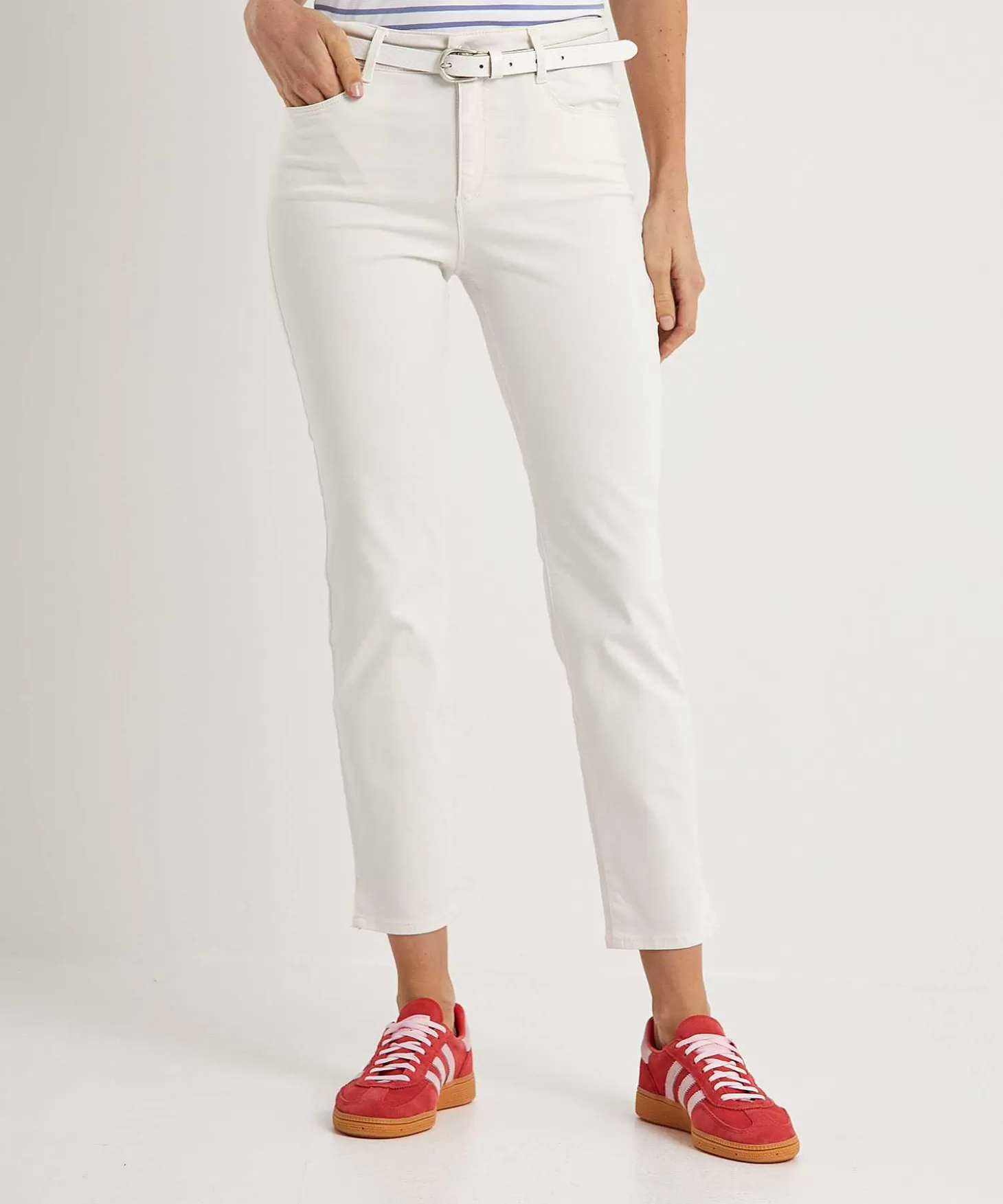 Shakira Is Een Skinny Broek Van Brax In Zomers Roomwit (Heel Licht Zand) Van Zachte Stretchy Katoen. Aansluitend En Minimalistisch, Ze Heeft Een Klein Splitje Bij De Enkel, Past Ze In Vele Outfits En Ze Kan Alle Stijlen Aan.