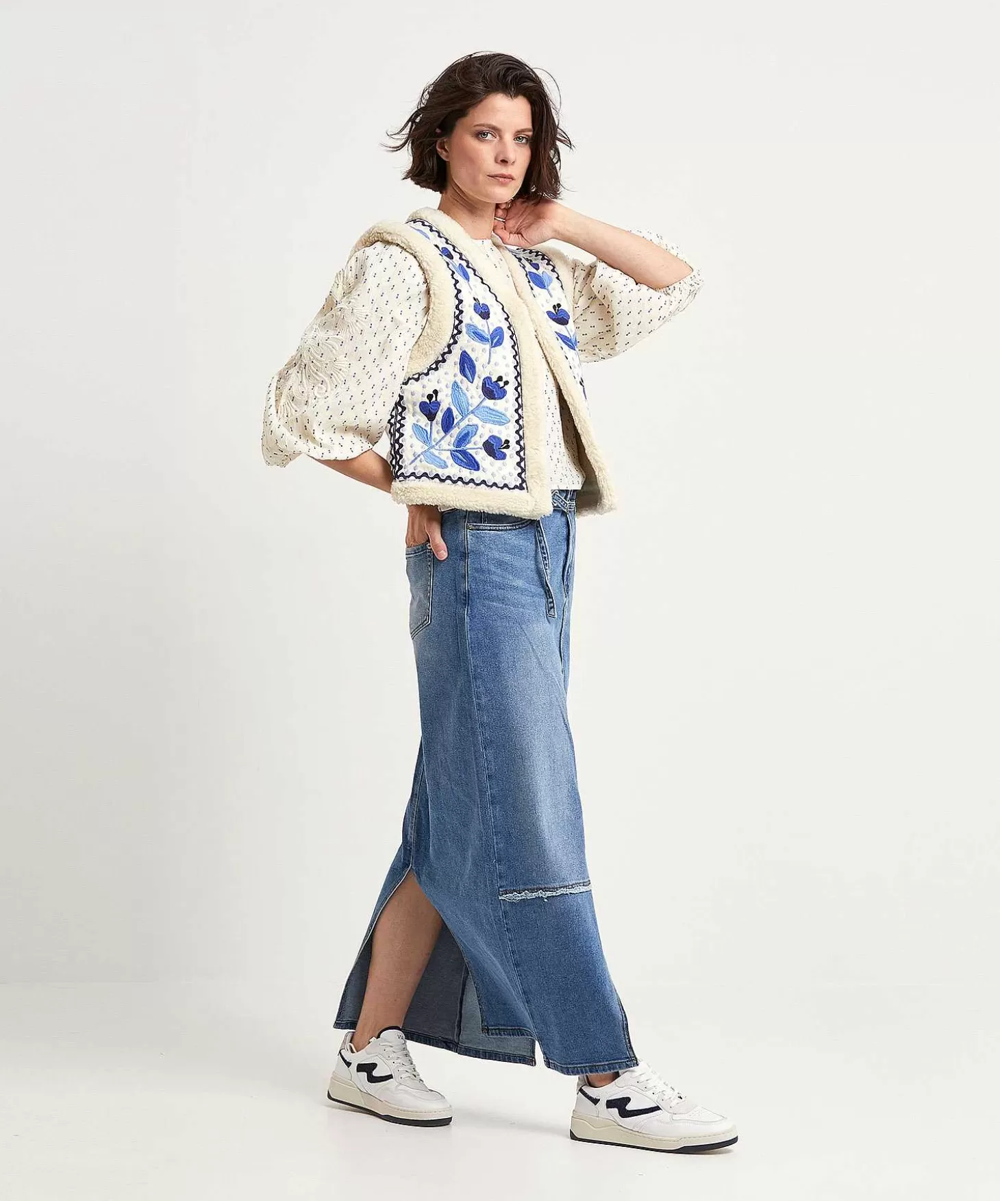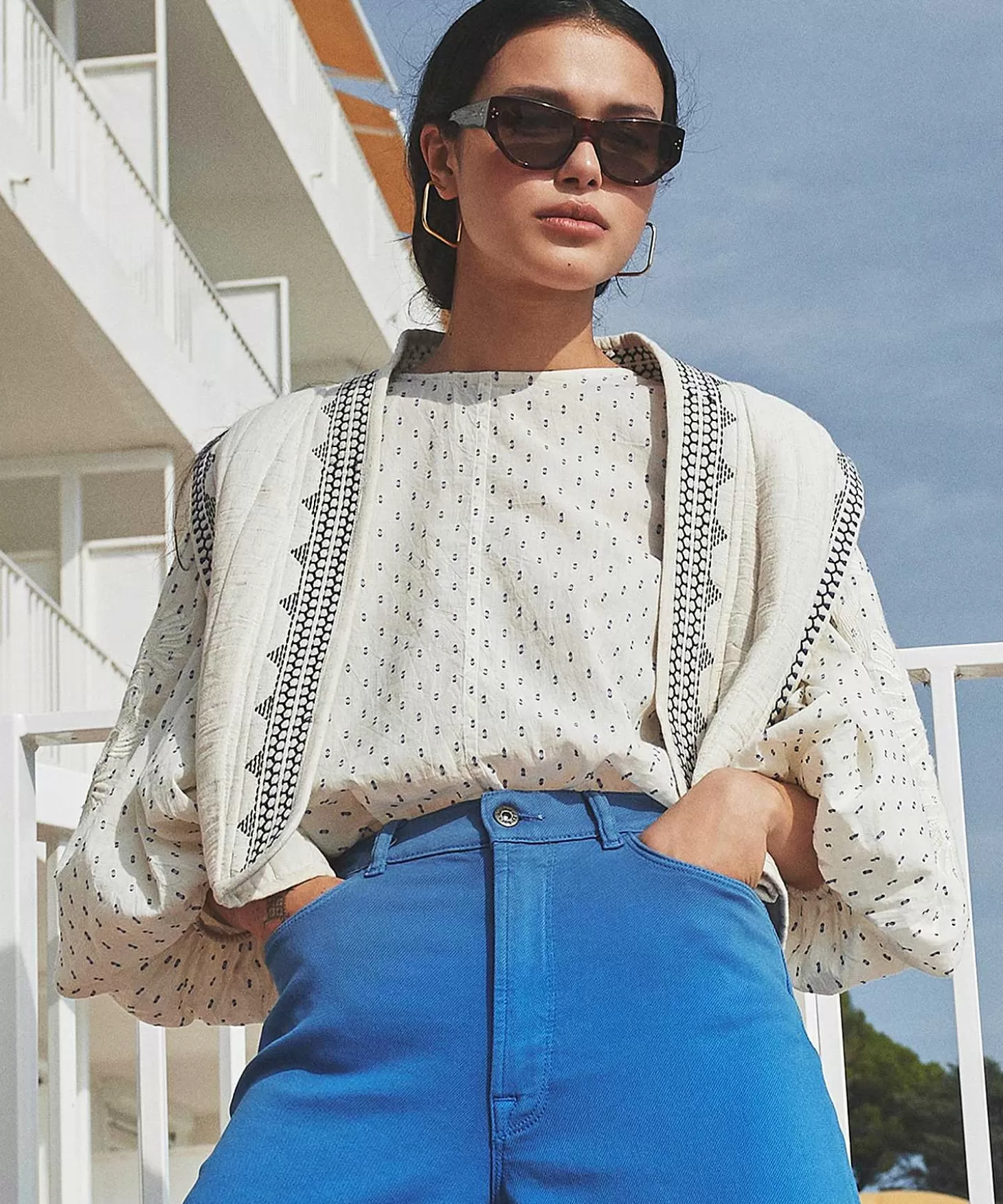 Embroidery Meets Puffy Met Deze By-Bar Blouse Met Pofmouw En Borduursel. Met Royaal Bloemborduursel Op De 3/4E Pofmouw, Een Hoge Hals En Ritsluiting Achter En Een Fijn Blauw Werkje Op Het Offwhite Is Zazu Een Bijzondere Top. Je Draagt Haar Losjes Boven Een Jeans Of Wide Leg Broek, Maar Ingestopt Bij Een Denim Rok Of Skinny Is Ze Niet Minder Fraai. Samenstelling: 100% Katoen.