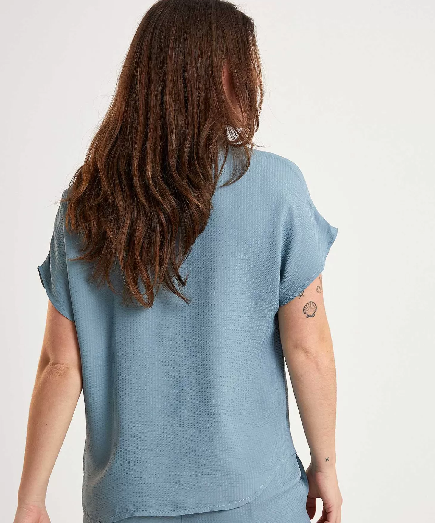 Elegantie Ten Top, Dat Is Wat Blouse Karly Uit De Collectie Van By-Bar Je Geeft. De Blouse Heeft Een Losvallend Recht Model Met Aangeknipte Korte Mouwen. De Subtiele Glans Van Het Ingeweven Streepje Geeft De Blouse Een Zachte Satijnglans. De Blouse In Grijsgroen Draag Je Stijlvol In Combinatie Met Zachte Zand- En Natureltinten. Of Ton-Sur-Ton Met Een Rok Of Broek In Dezelfde Grijsgroene Kleur. Samenstelling: 100% Viscose.