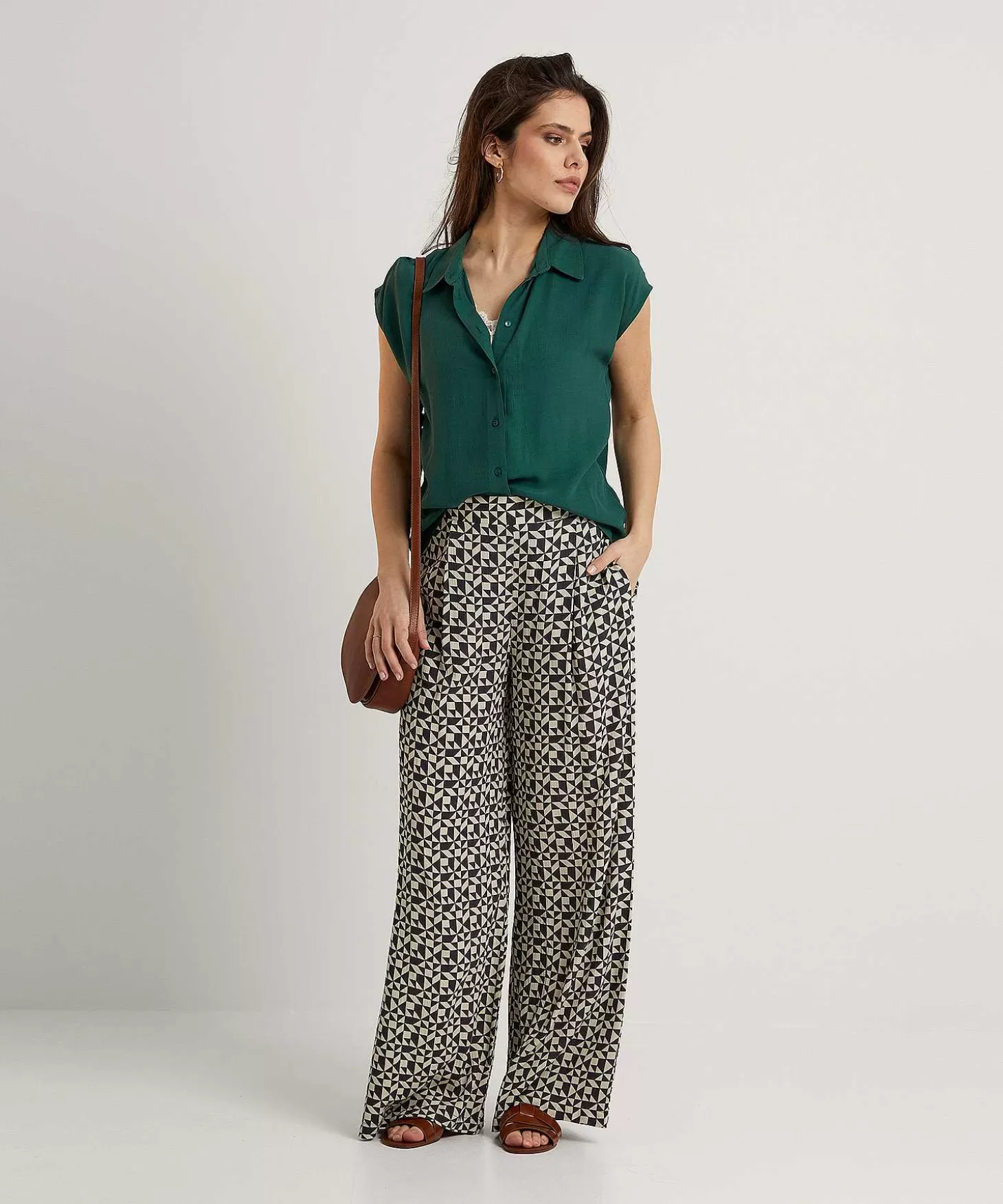 In Crispy Viscose Crêpe Is Deze By-Bar Blouse Een Luchtige Musthave. Zie Je Haar Korte Aangeknipte Mouw, Puntkraagje En Ronde Zoom Achter? In Dennengroen En Met Een Minimalistisch Ontwerp Bewijst Ze Absoluut De Stelling Less Is More. Je Combineert Kiek Met De By-Bar Palazzo Broek Robyn, Een Jeans Of Denim Rok + Sneakers, Loafers Of Sandaaltjes. Als Het Wat Frisser Is Draag Je Haar Met Een Blazer Of Vestje En Dankzij Haar Losse Fit Voel Je Haar Amper. Samenstelling: 100% Viscose.