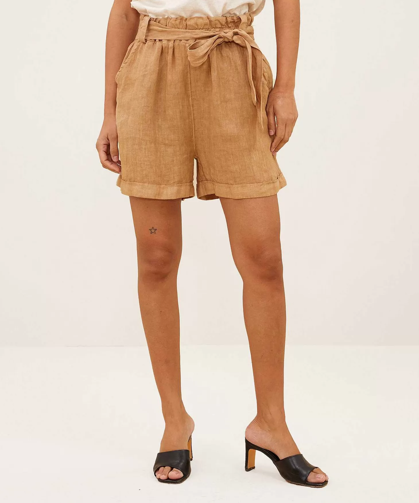 June Is De Ideale Linnen Short Van By-Bar Voor Een Eindeloze Zomer. Met Haar Elastische Tailleband, Steekzakjes, Matching Afneembare Ceintuur En Vaste Omslagjes Aan De Korte Pijp Wordt Ze Jouw Favoriete Korte Broek. In Camel Of Oceaan Blauw Is Er Altijd Een Kleur Naar Jouw Garderobe En Smaak. Je Draagt Deze Short Naar Het Strand Met Een T-Shirt En Slippertjes. Bohochic Combineer Je Haar Met Een Geborduurde Blouse, Een Rits Armbanden En Sandaaltjes Op Citytrip. Samenstelling: 100% Linnen.