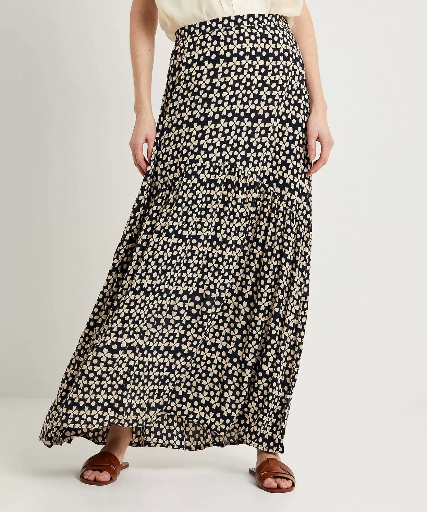 Met Maxi-Rok Joya Khandi Uit De Collectie Van By-Bar Kom Je Zwierig En Stijlvol Voor De Dag. De Rok Heeft Een Elastische Tailleband En Is Uitgevoerd In Een Feestelijke Mix Van Kleine Zandkleurige Bloemetjes Op Een Marineblauwe Ondergrond. Combineer Haar Met Veelzijdige Blouses Uit Deze Collectie Of Kies Voor De By-Bar Truitjes Neva Slub In Marinestreep Of Effen Zand. In Combinatie Met Blouse Bo Khandi Creëer Je Het Effect Van Een Jurk. De Zachte Viscose, Maakt Dat Deze Rok Zacht En Vloeiend Valt. Samenstelling: 100% Viscose.