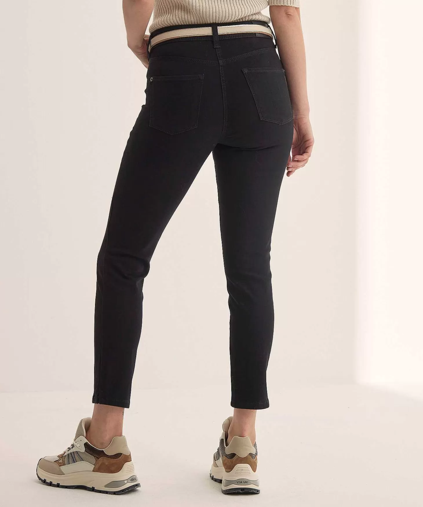 Wordt Deze Slim Fit Cambio Broek In Diep Denim Black Jouw Favoriete Najaarsbroek? Broek Piper Heeft Een Aansluitende Fit, Cropped Lengte Met Splitjes En Valt Daarmee Net Boven De Enkel. Ze Is Uitgevoerd In Een Zachte Stevige, Maar Rekbare Stretchy Katoen. Deze Alleskunner Past Bij Alles Uit Jouw Kledingkast. Draag Piper Met Een Blouse, Top + Blazer Of Winterse Knitwear, Maar Ook Met Een Streeptop + Sneakers, Loafers Of Cowboyboots Kom Je Altijd Stijlvol Voor De Dag. Samenstelling: 77% Katoen, 18% Polybutyleentereftalaat, 5% Elastan.