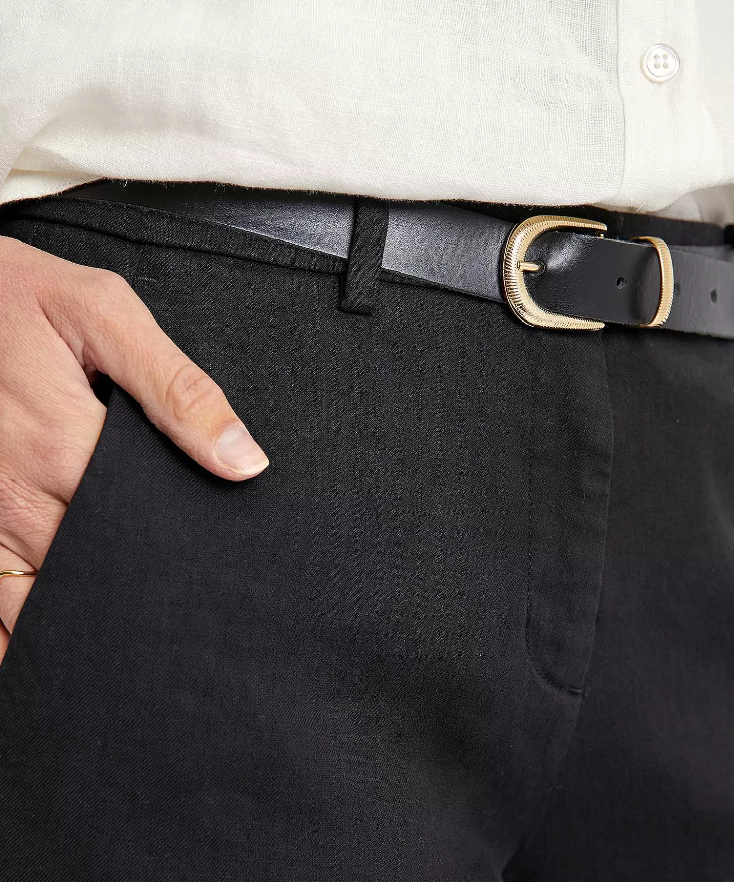 Deze Cambio Pantalon Combineert Een Rijke Linnenmix Met Een Cropped Model. In Een Kortere Lengte Met Vaste Omslag Aan Het Taps Toe Lopende Pijpje Is Deze Broek Absoluut Summerproof. Zie Je Haar Klassieke Sluiting, Steekzakjes, Fake Paspels Achter En Persvouwen? In Neutraal Zwart Of Biscuit Is Er Altijd Een Kleur Naar Jouw Garderobe En Krystal Past Bij Veel. Je Draagt Haar Met Knitwear, Een Blouse (+ Blazer), Een T-Shirt Of Vestje + Sneakers, Loafers, Sandaaltjes Of High Heels. Samenstelling: 65% Linnen, 34% Katoen, 1% Elastan.