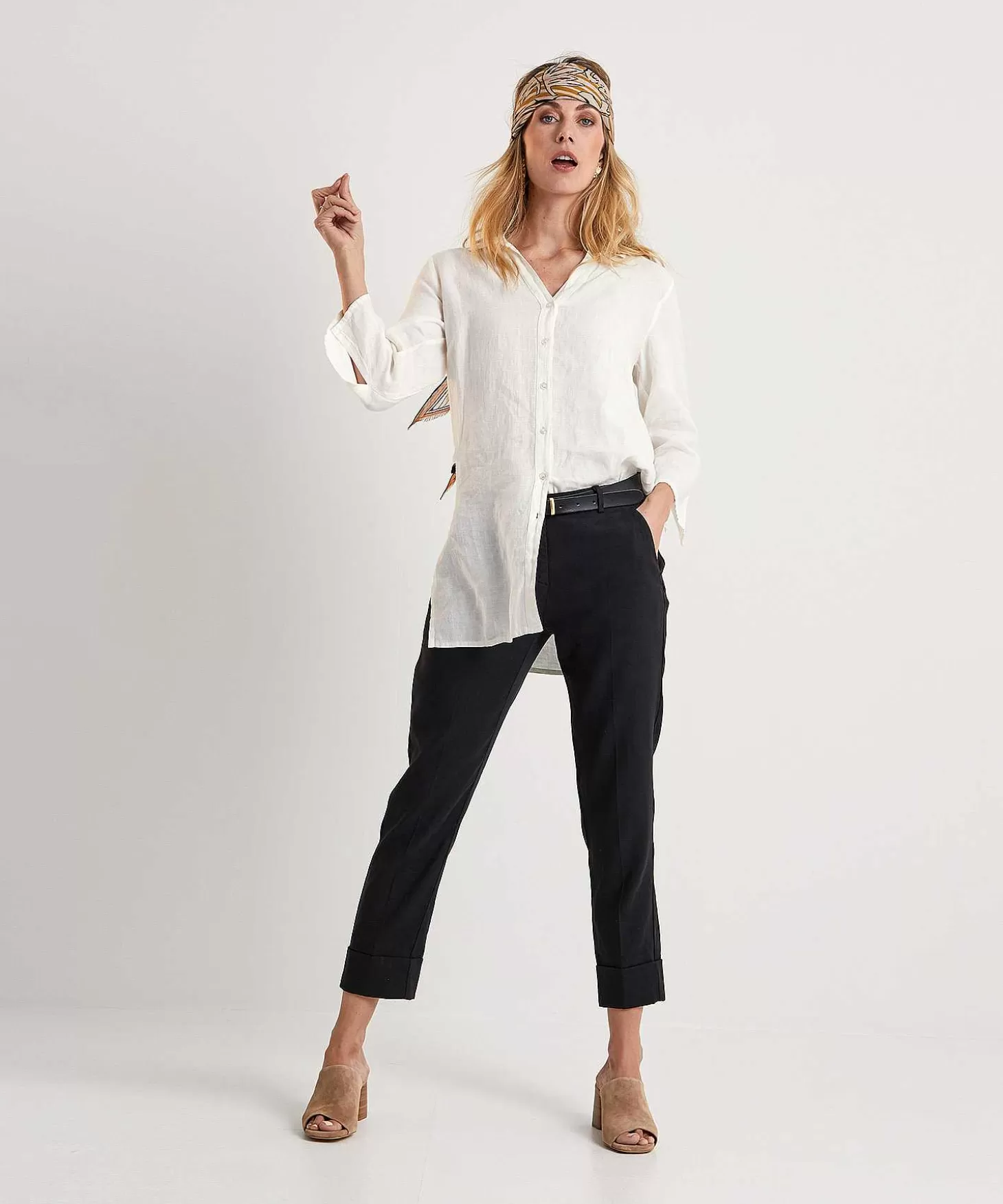 Deze Cambio Pantalon Combineert Een Rijke Linnenmix Met Een Cropped Model. In Een Kortere Lengte Met Vaste Omslag Aan H…