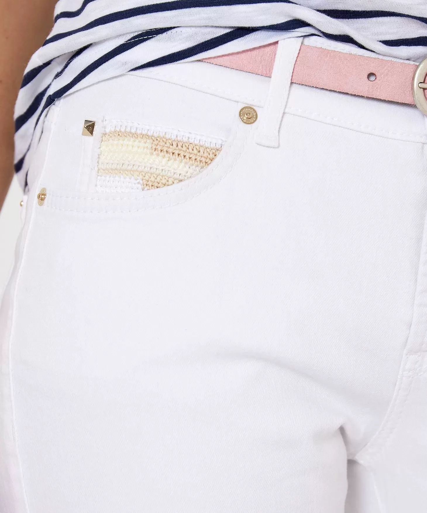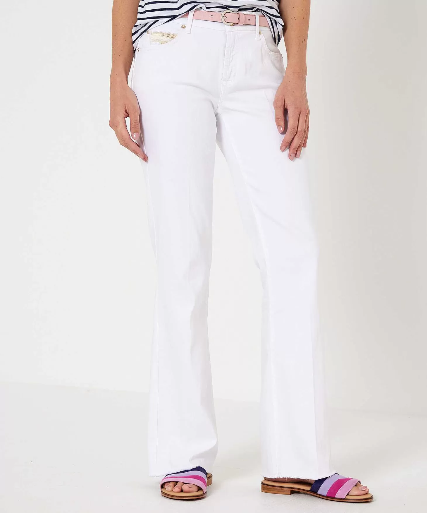 Like Emily In Paris Draag Je Deze Cambio Flared Jeans Tijdens Al Jouw Stadse Avonturen. Zie Je Haar Stralend Witte Zomerkleur, Chique Offwhite/Zandkleurige Borduursel Bij Het Steekzakje En Goudkleurige Studs, Nagels En Knoop? Met Haar Uitlopende (Flared) Pijp Mét Persvouw En Fringes Langs De Zoom Wandel Je Overal Op Een (Slee)Hakje Naar Toe. Je Draagt Haar Met Een Bretonse Streeptop En Loafers Op Maritieme Citytrip, Maar Ook Met Een Blazer + Top En High Heels Ben Je Office- En Partyproof. Uit Eten Match Je Haar Met Een Printblouse Of Luchtige Knitwear En Sandaaltjes. Paris, Here We Come! Samenstelling: 94% Katoen, 4% Elastomultiester, 2% Elastan.