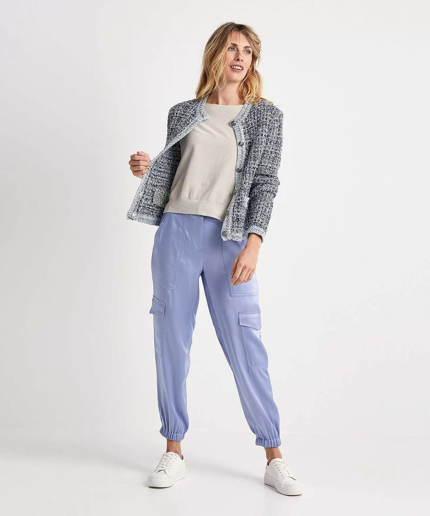 Deze Cambio Broek Combineert Silky Met Een Cargo Model. Voel Je Haar Soepele Materiaal En Zie Je Haar Glans Én Royale Cargozakken En Relaxte Fit? In Neutraal Ecru Of Skyblue Is Er Altijd Een Kleur Naar Jouw Garderobe En Ze Combineert Met Veel. Je Draagt Haar Met Knitwear, Een Blouse + Blazer Of Een Bretonse Streeptop Of T-Shirt. Loafers, Sneakers, Laarsjes Of High Heels Eronder En Je Bent Altijd Stralend Onderweg Met Karo. Let Op: De Stof Stretcht Niet. Samenstelling: 71% Acetaat, 29% Viscose.