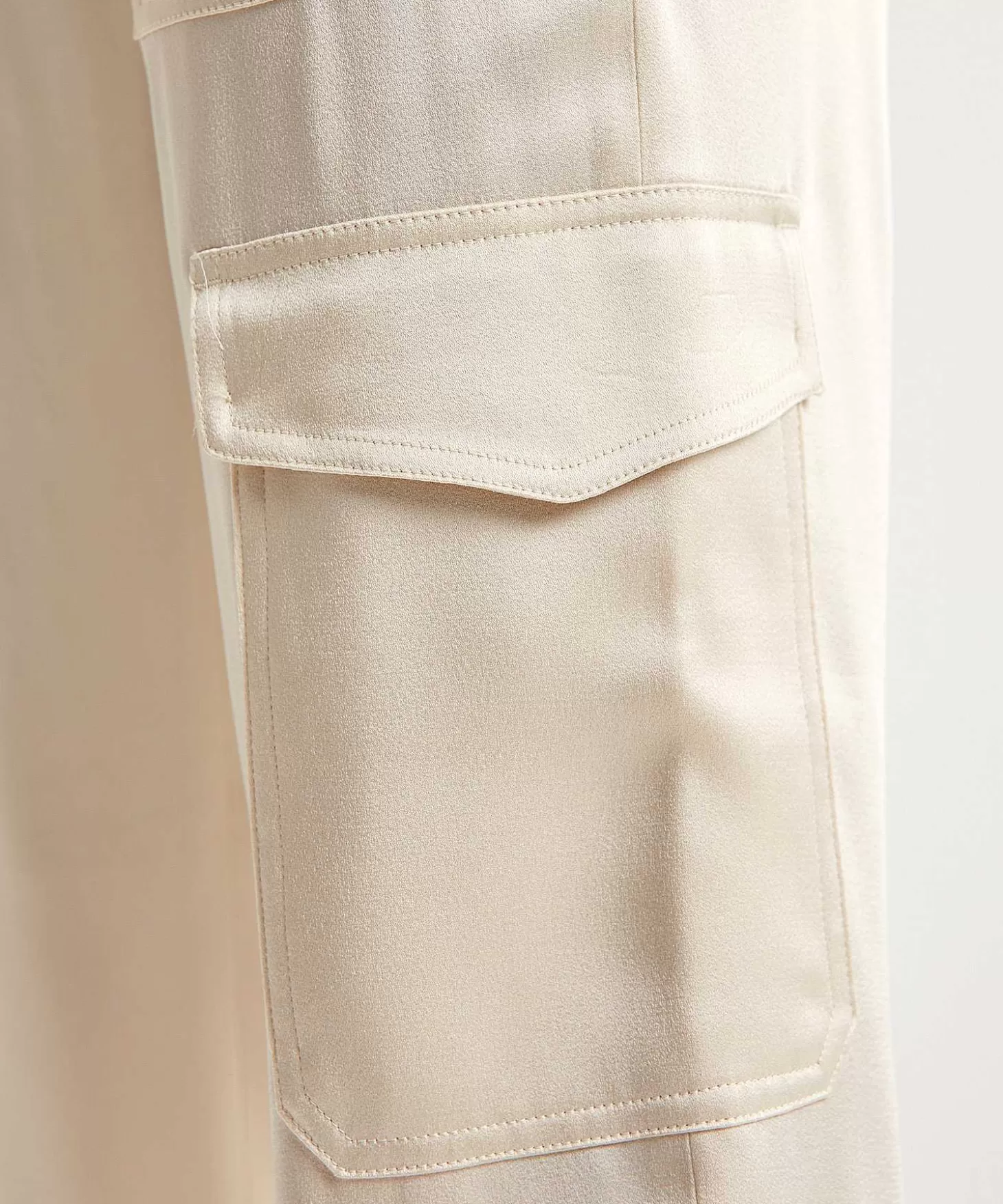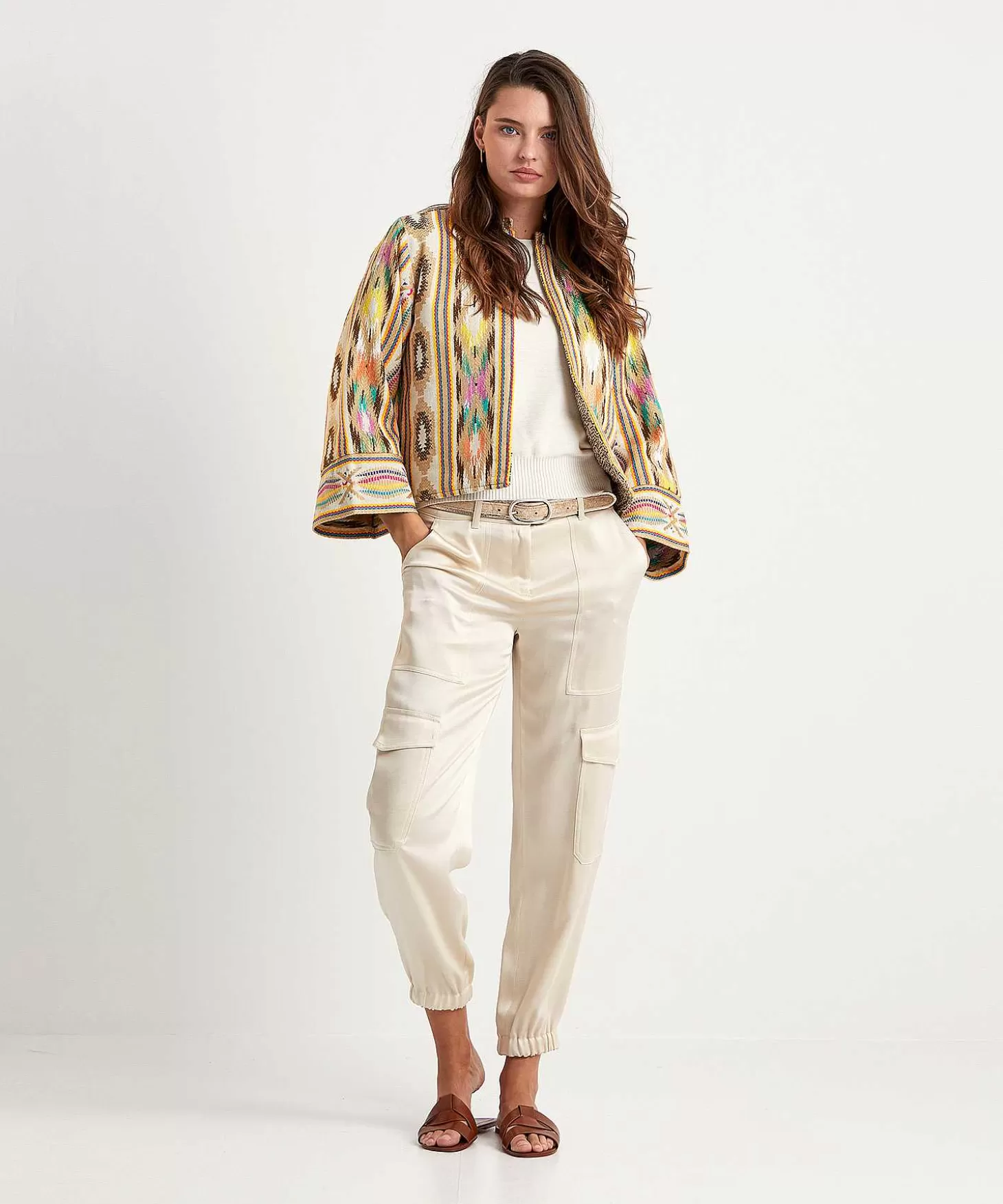 Deze Cambio Broek Combineert Silky Met Een Cargo Model. Voel Je Haar Soepele Materiaal En Zie Je Haar Glans Én Royale Cargozakken En Relaxte Fit? In Neutraal Ecru Of Skyblue Is Er Altijd Een Kleur Naar Jouw Garderobe En Ze Combineert Met Veel. Je Draagt Haar Met Knitwear, Een Blouse + Blazer Of Een Bretonse Streeptop Of T-Shirt. Loafers, Sneakers, Laarsjes Of High Heels Eronder En Je Bent Altijd Stralend Onderweg Met Karo. Let Op: De Stof Stretcht Niet. Samenstelling: 71% Acetaat, 29% Viscose.