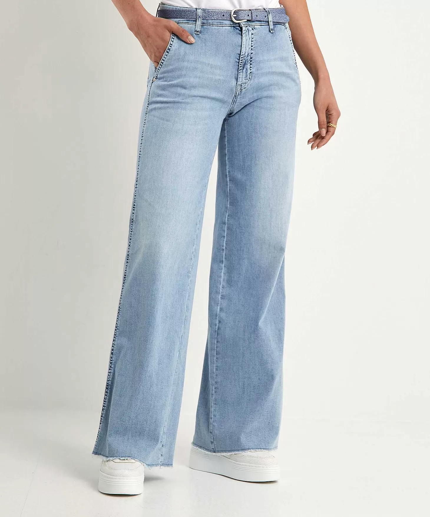 Deze Cambio Wide Leg Jeans Combineert Superstretch Met 70’S Vibes. In Zomerse Light Denim Wassing En Met Franje Aan D…