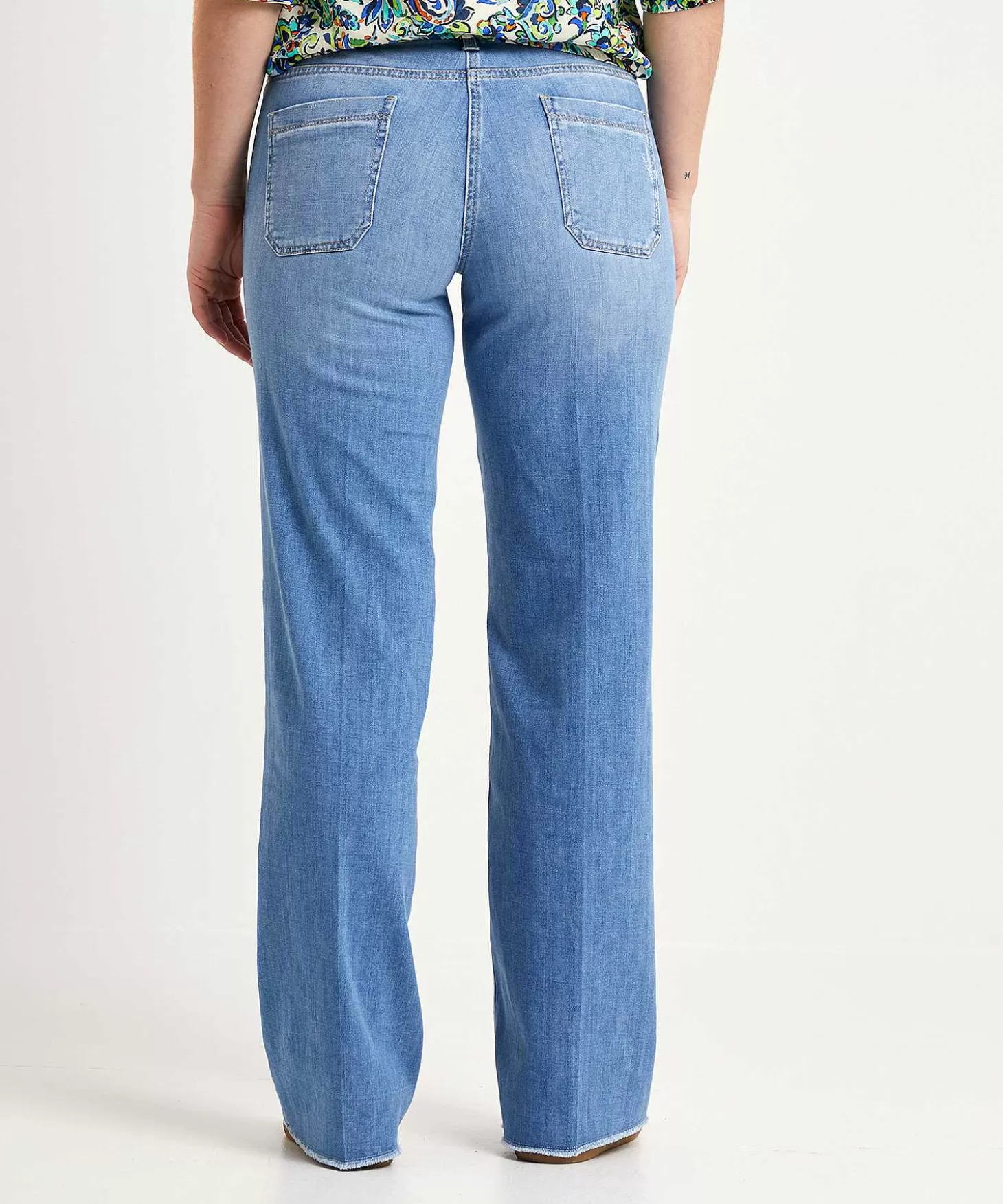 Met Haar Wide Leg Is Deze Cambio Jeans Ready For Spring & Summer. Zie Je Haar 70’S Inspired Model Met De Rechte Wijde Pijp, De ‘Vierkante’ Steekzakjes Voor, Achterzakken, Persvouwen En Rafeltjes Langs De Onafgewerkte Zoom? In Een Lichte Wassing En Van Dunnere Stretchy Denim Draagt Deze Jeans Super Comfortabel En Je Combineert Haar Met Veel. Je Draagt Tess Met Een Broderie Blouse En Een Sleehak Of Cowboylaarsje Voor Een Romantische Boho Stijl En Wat Dacht Je Van Samen Met Een Bretonse Streeptop Of Knitwear En Loafers? Maar Ook Een Kleurige Blouse Of T-Shirt Kan Ze Aan Met Sneakers. Met Tess Is Je Outfit Altijd Een Fashionable Succes. Samenstelling: 92% Katoen, 6% Elastomultiester, 2% Elastan.