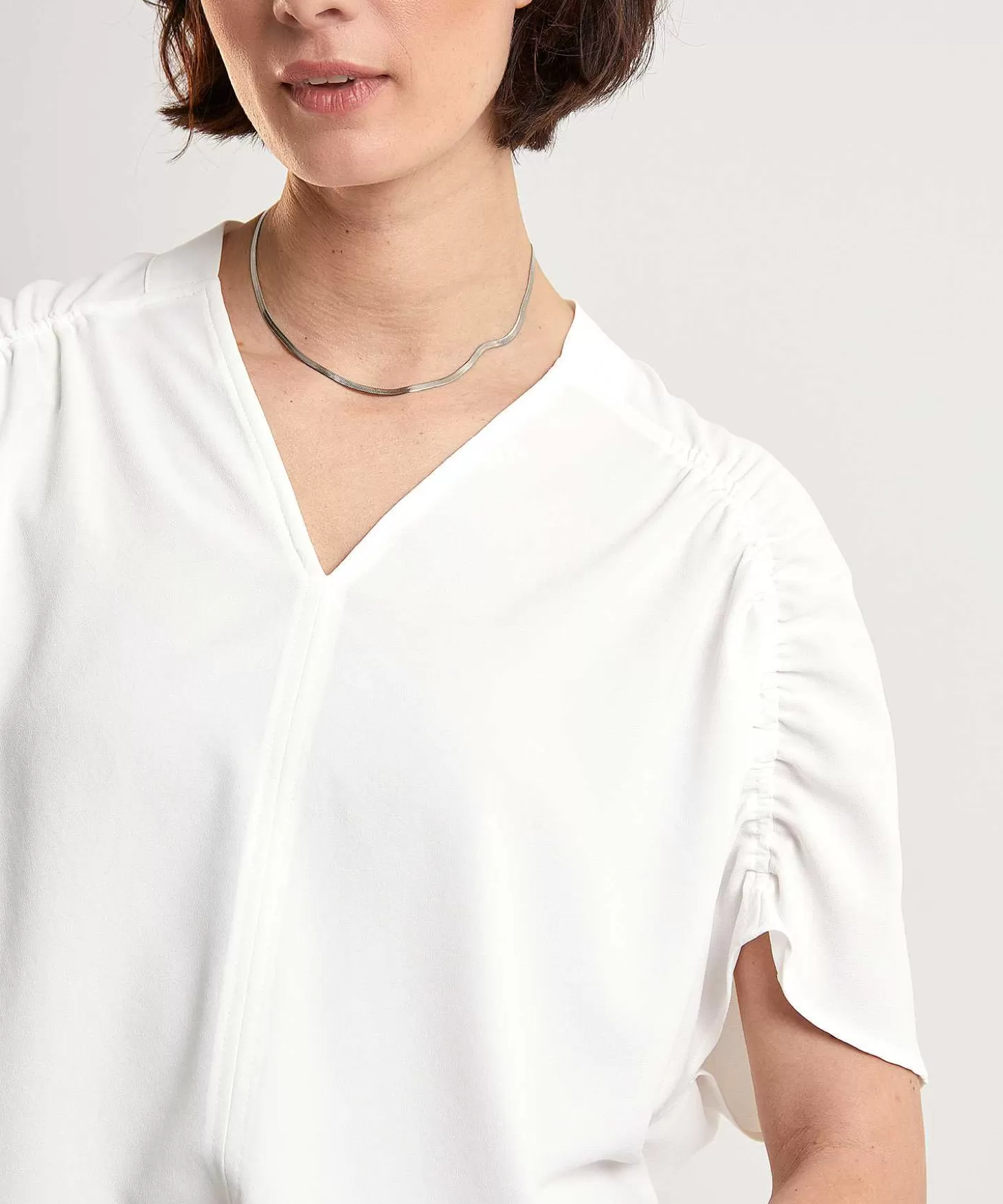 Deze Caroline Biss Blouse Met Gesmockte Aangeknipte Mouw Is Stijlvol De Beste. Wat Een Geraffineerd Ontwerp Met Haar V-Hals, Elastische (Smock) Inzet, Verticale Deelnaad Middenvoor En Elegante Ronde Zoom. Van Vederlichte Witte Crêpe Danst Deze Top Om Je Lichaam En Ze Past Bij Veel. Draag Haar Met De Caroline Biss Flared Jeans Met Knopen + Loafers En Waan Je Op De Boulevard Langs Het Strand. En Wat Dacht Je Van De Combinatie Met De Caroline Biss Wide Leg Broek In Poplin +Sneakers Op Klassiek Sportieve Stedentrip? Samenstelling: 100% Polyester.