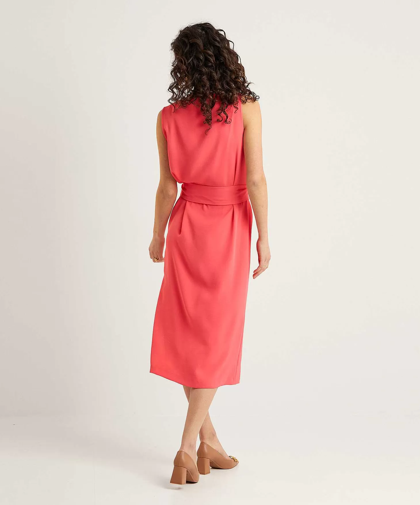 In Fluorescerend Koraal En Minimalistisch Model Is Deze Caroline Biss Jurk Ready To Party! Zie Je Haar Waterval Hals En Afneembare Royale Riem Met Goudkleurige Cirkelgesp + Drukknopen En Voel Je Haar Soepele (Stretcht Niet!) Materiaal? Met Een Lengte Tot Over De Knie En Een Zijsplit Beweeg Je In Deze Feestelijke Jurk Soepel En Comfortabel. Je Combineert Haar Met High Heels, Loafers, Een Sleehak Of Een Sneaker (Het Is Jouw Feestje) En Ook Met Een Blazer Of Vestje Ben Je Overal Picture Perfect. Samenstelling: 100% Polyester.