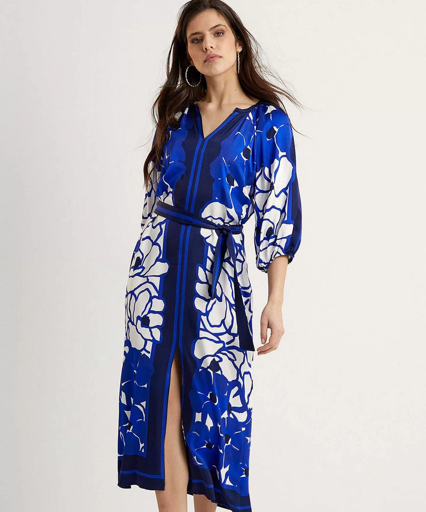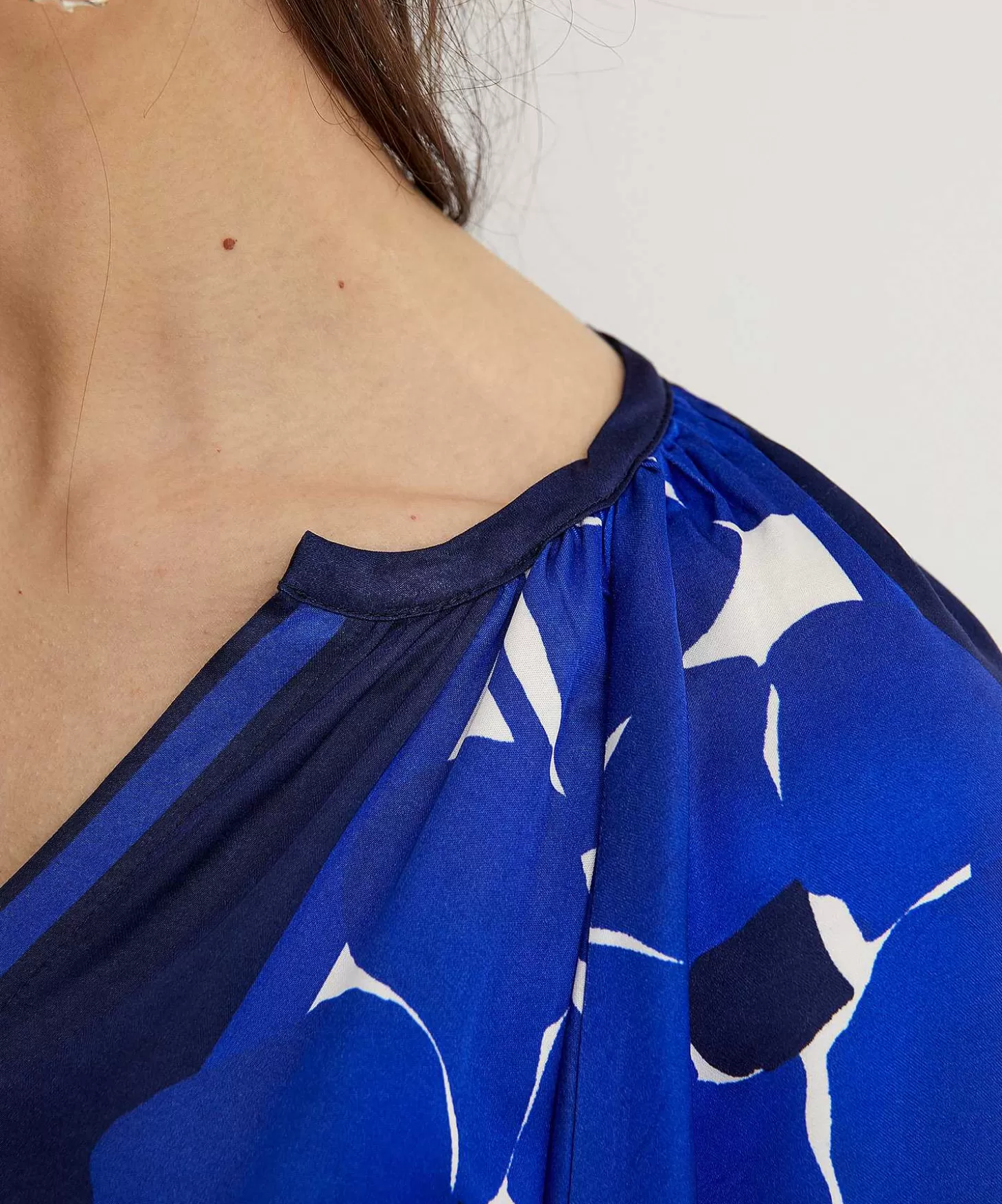Caroline Biss Heeft Zichzelf Overtroffen Met Deze Silky Jurk Met Flowerprint. Wat Een Beauty Met Haar Levendige Kleurpalet In Koningsblauw, Marine En Stralend Wit. Zie Je Haar Feminien Model Met Kniphals, Plooitjes Langs De Hals En 3/4E Raglanmouw Met Elastische Manchet En Voel Je Haar Zachte Silky Viscose? Deze Feestelijke Jurk Heeft Een Afneembaar Strikceintuur Voor Een Zandlopereffect, Verborgen Steekzakken En Ze Komt Tot De Enkel (En Heeft Een Split Middenvoor). Je Draagt Deze Wervelende Feestjurk Met Loafers, High Heels Of Ballerina’S En Je Steelt Overal De Show. Samenstelling: 100% Viscose.
