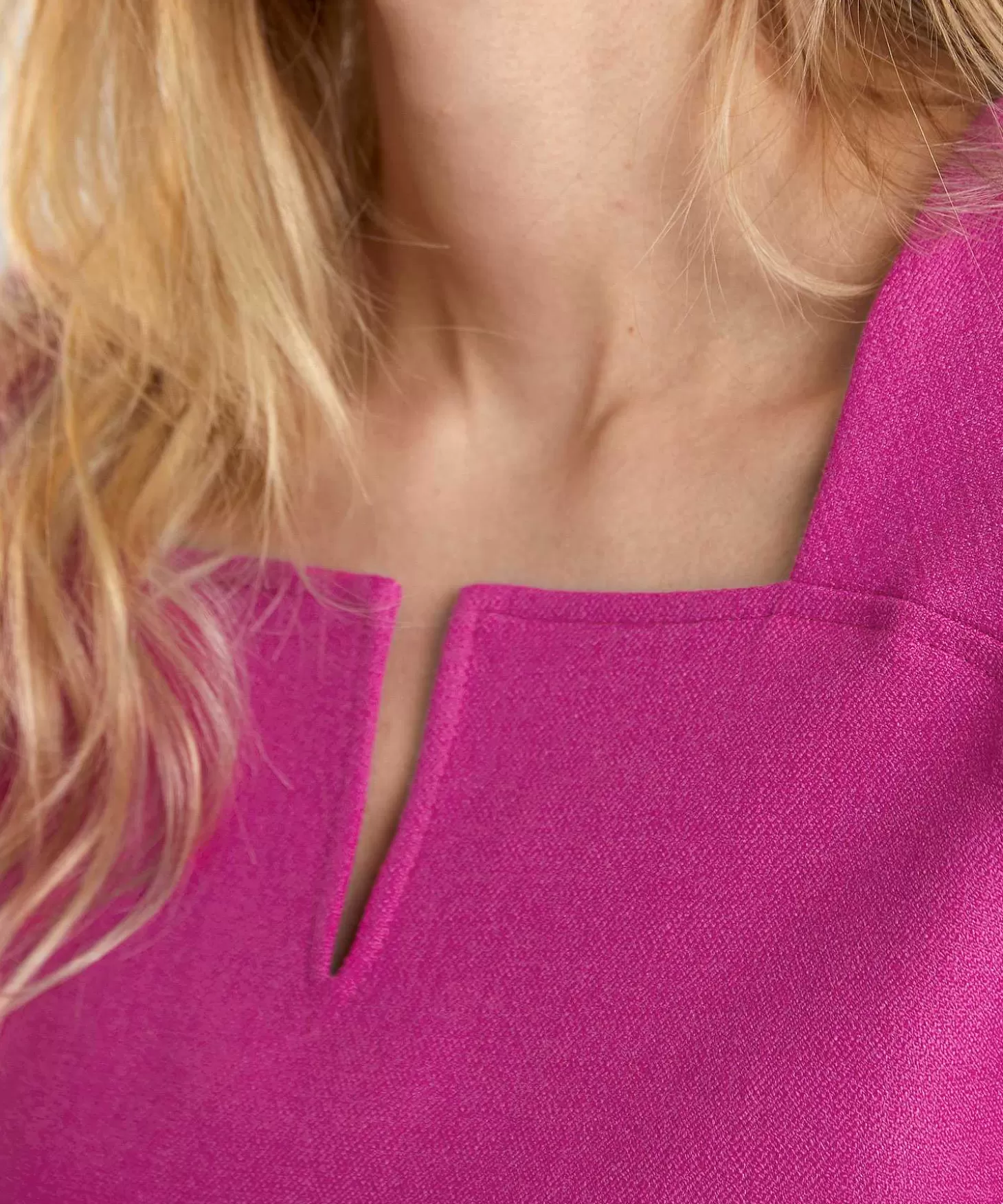 Deze Caroline Biss Top In Chique Crêpe (Stevig Maar Soepel) Flirt Met De Lente En Zomer Dankzij Haar Frisse Orchid Pink Kleur. Zie Je Haar Geraffineerde Halslijn Met Split En De Ingenieuze 3/4E Raglanmouw? Met Haar Rechte Losse Fit En Minimalistische Uitstraling Combineert Ze Perfect Met De Matching Caroline Biss Pantalon + Loafers Voor De Ultieme Monochrome Look. Maar Ook Met Een Smalle Jeans Of Vegan Leren Broek + High Heels Creëer Je De Perfecte Office- En Partylook. Samenstelling: 71% Polyester, 27% Viscose, 2% Elastan.