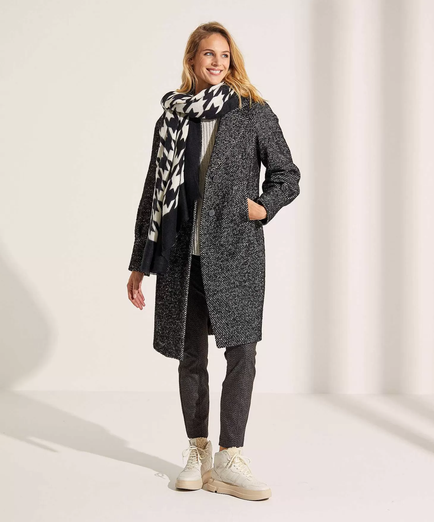 Deze Creenstone Mantel Ademt Klassieke Luxe. Zie Je Haar Rijke Twill Bouclé Flirtend Met Tweed In Zwart/Offwhite En Vo…