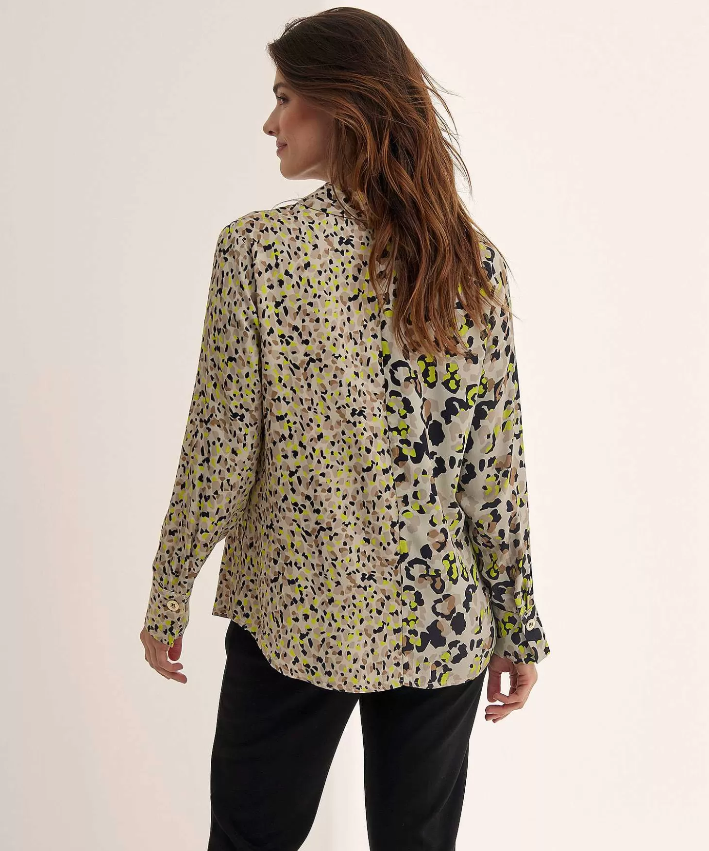Een Dierprint In Een Kleine En Een Uitvergrote Versie Gecombineerd In Één Blouse En Afgewisseld In De Panden. Deze Bl…