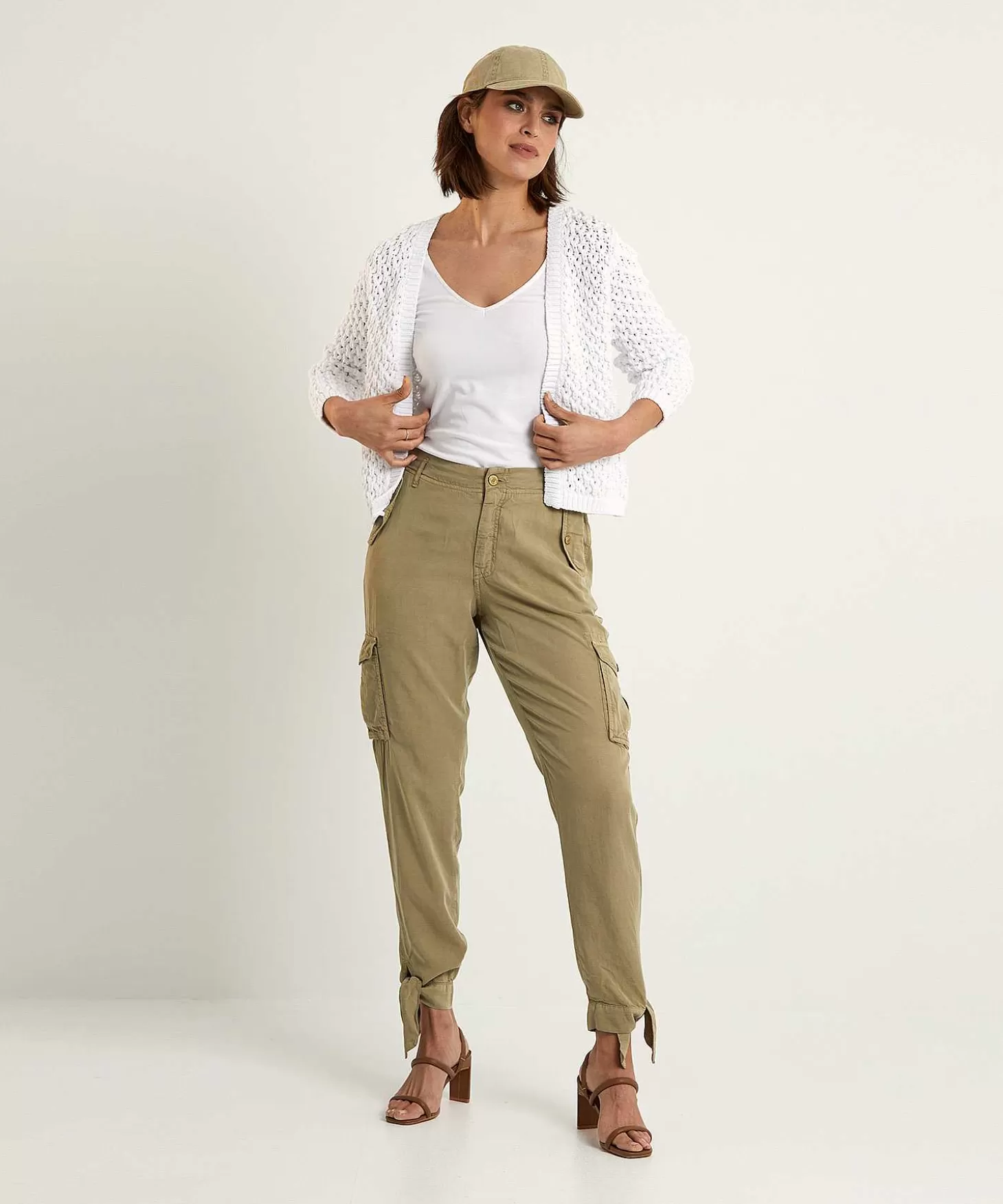 In Grof Ajour Reliëf-Patroon Is Dit Emotions Vest Feminien En Stoer Tegelijk. Zie Je Haar Multimatch Witte En Zand Kle…