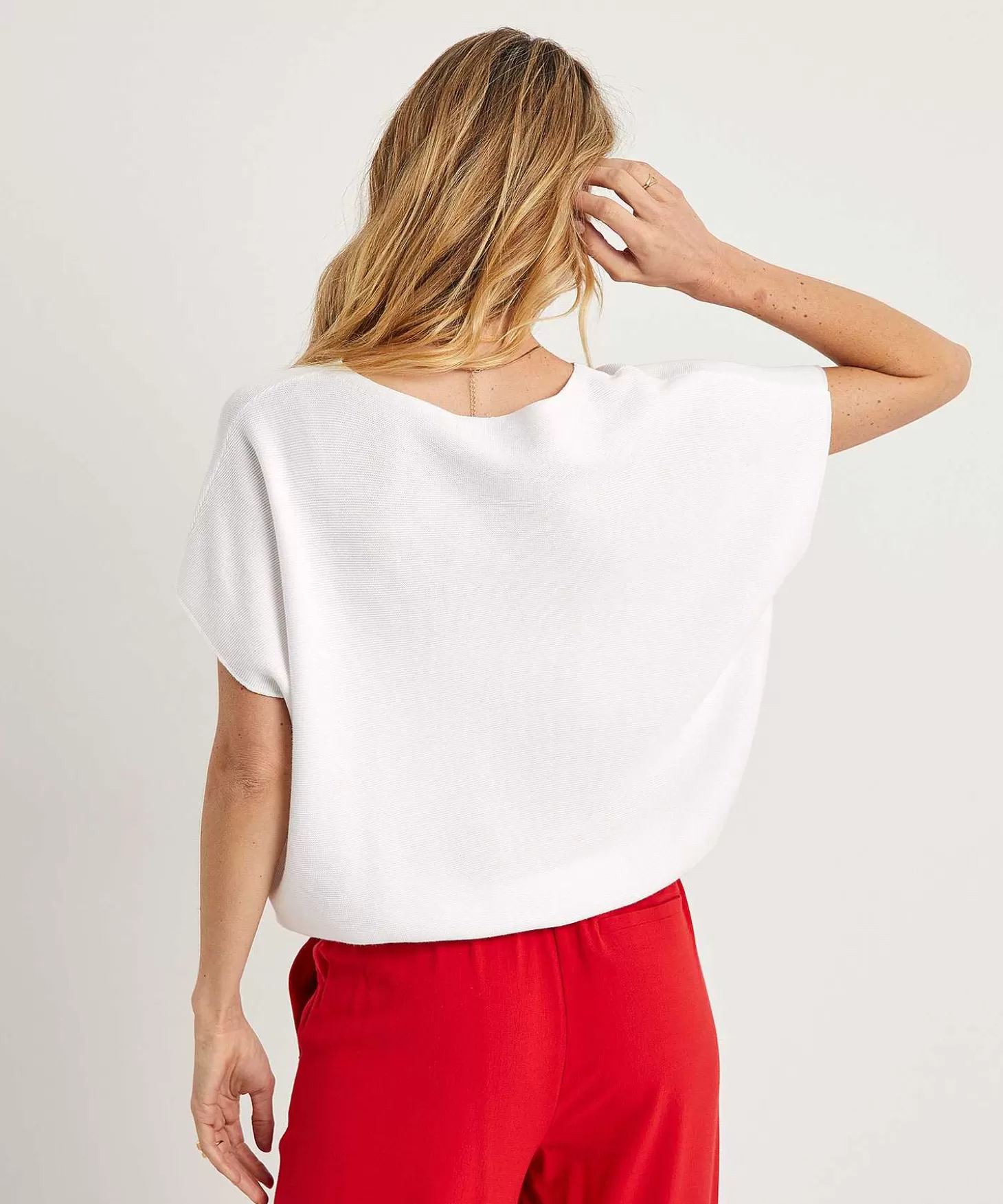 No Mixed Emotions Met Dit Emotions Truitje In Fijne Knit. Met Haar Wijde Hals En Korte Aangebreide Mouw En Taps Toelope…