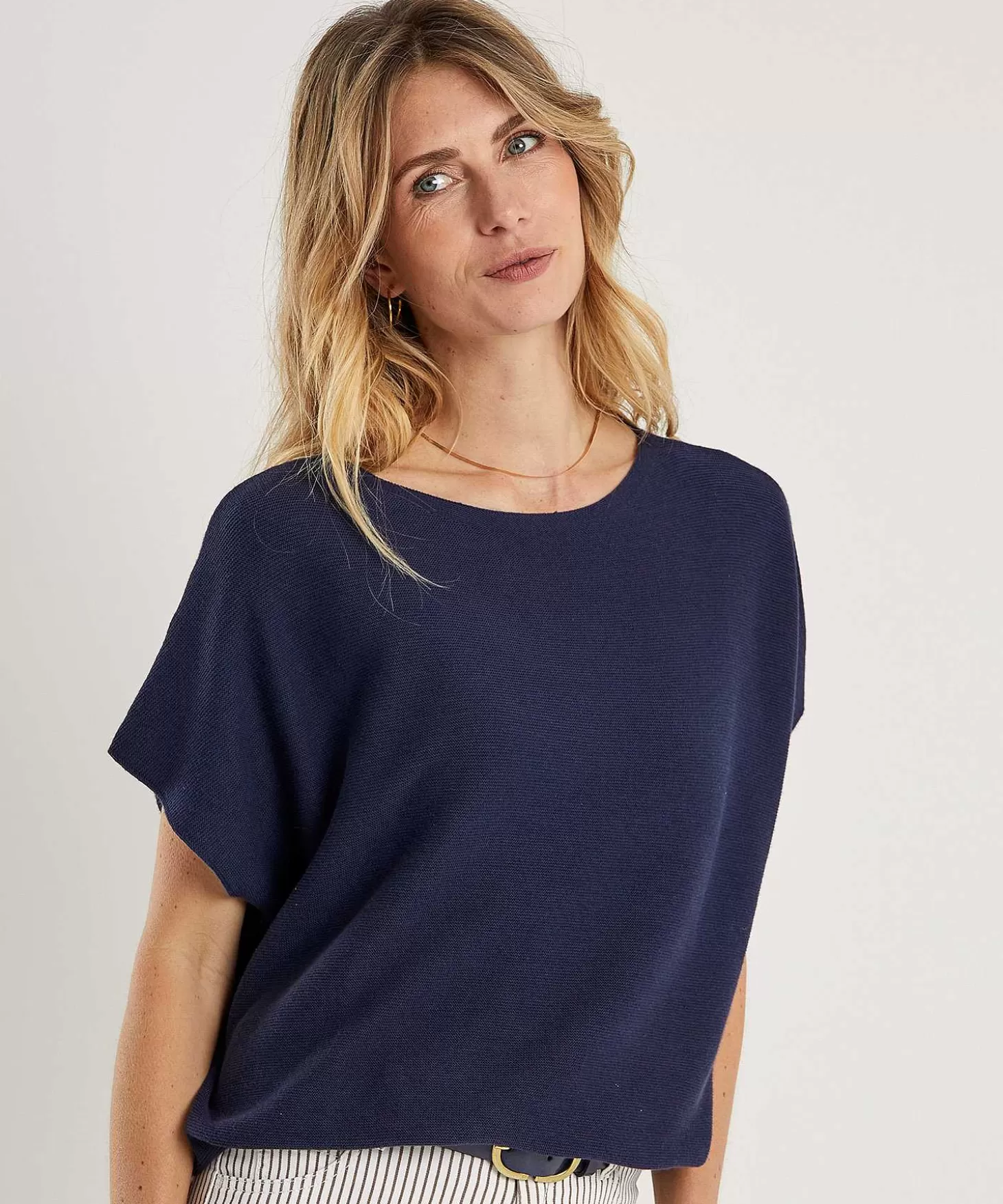 No Mixed Emotions Met Dit Emotions Truitje In Fijne Knit. Met Haar Wijde Hals En Korte Aangebreide Mouw En Taps Toelopende Model Is Deze Trui Ready For Summer. Verkrijgbaar In Offwhite, Grijsblauw (Turquoise) En Marine Is Er Altijd Een Kleur Naar Jouw Garderobe. In Minimalistisch Model, Los En Aansluitend Op De Heup En Van Aangename Katoenmix Draag Je Haar Fashionable De Seizoenen Door.