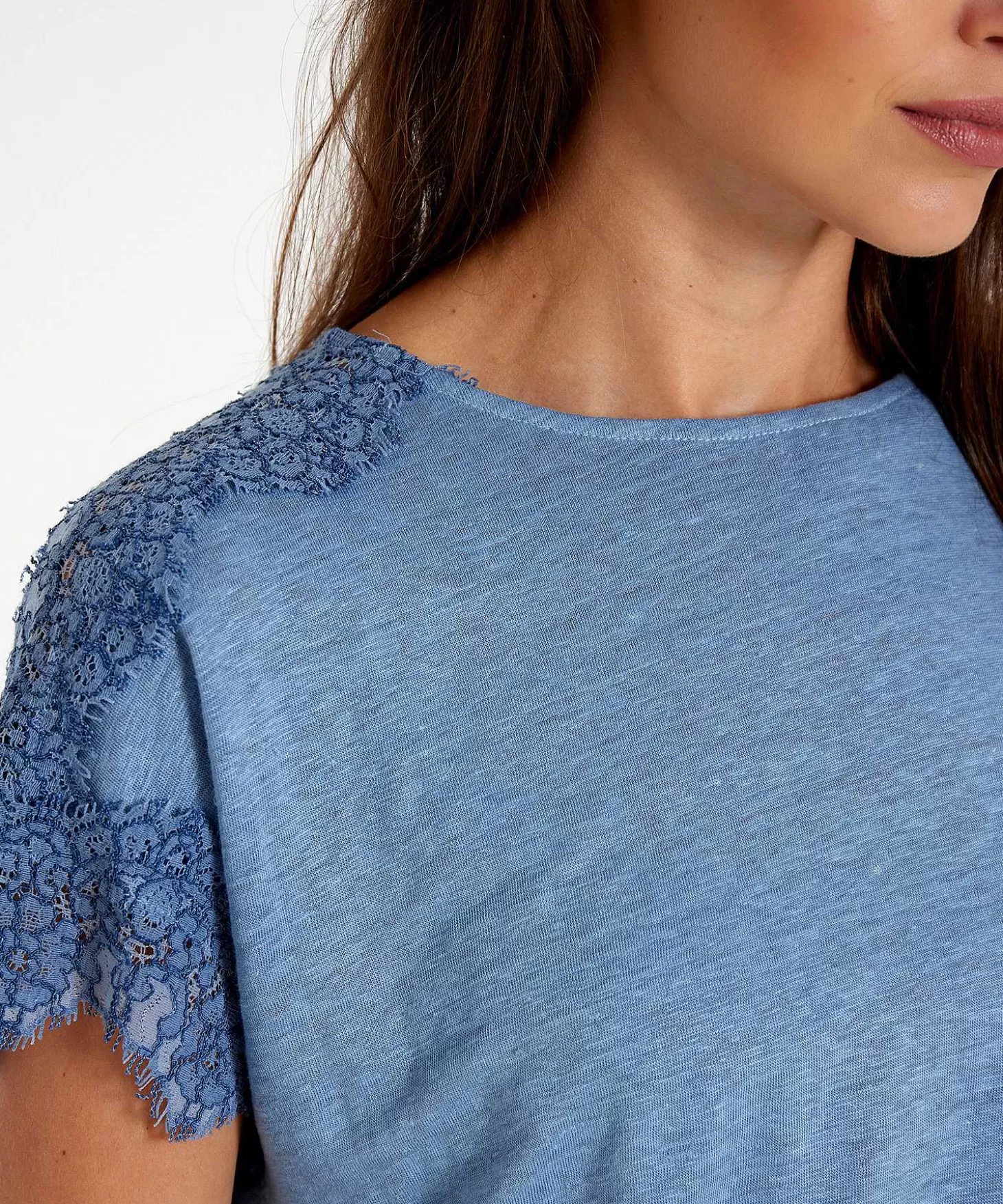 No Mixted Emotions Met Dit Linnen Emotions Shirt Met Kanten Inzet Langs De Hals En Schouders. Wat Een Vrolijke Mooi-Weer-Top In Groen Of Vergrijsd Blauw Linnen Met Kort Aangeknipt Mouwtje – Dubbel Luchtig En Super Feminien. Je Draagt Dit Shirt Met (Nu Nog) Een Blazer Of Vestje, Een Pantalon Of Palazzo En Loafers Naar Een Feestje Of Je Werk. Maar Ook Op Stedentrip Met Een Jeans En Sneakers + Een Denim Jasje Of Trenchcoat Oog Je Minimal Chic En Sportief. Met Shorts En Slippertjes Is Het Fashionable Struinen Door De Duinen, Wat Doe Jij? Samenstelling: 100% Linnen. Kantstof: 65% Katoen, 35% Polyamide.