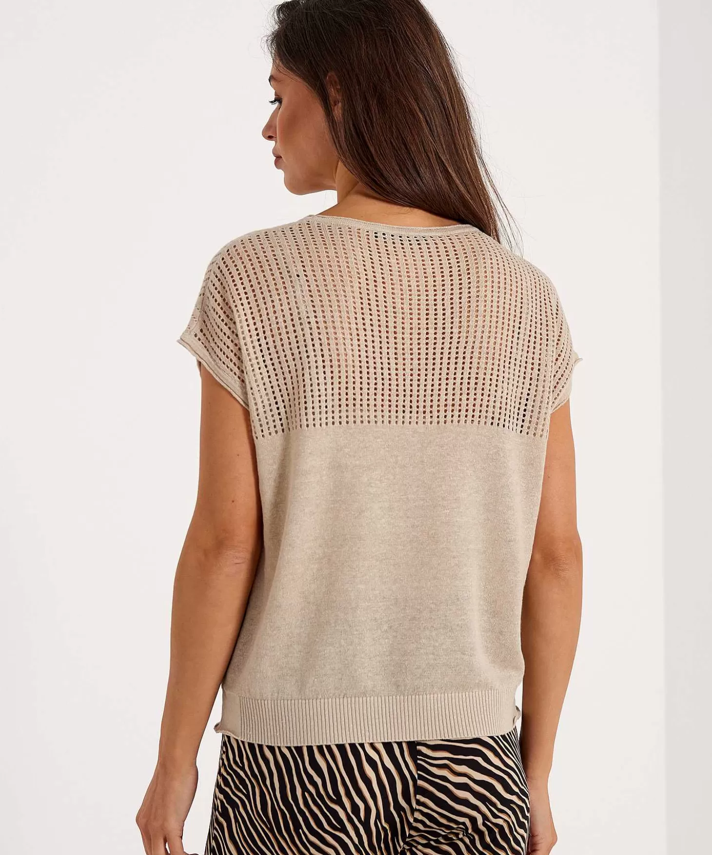 Dit Linnen Truitje Van Emotions Is Met Haar Pointelle Hals Ready For Summer. Wat Een Geraffineerd Opengewerkt Patroon I…