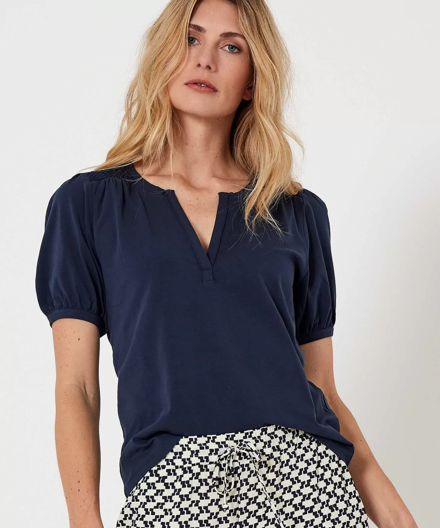 Verwelkom De Zomer In Dit Emotions Shirt Met Pofmouw En Fijne Smock Bij De Schouder. Voel Je Haar Zachte Stretchy Katoe…