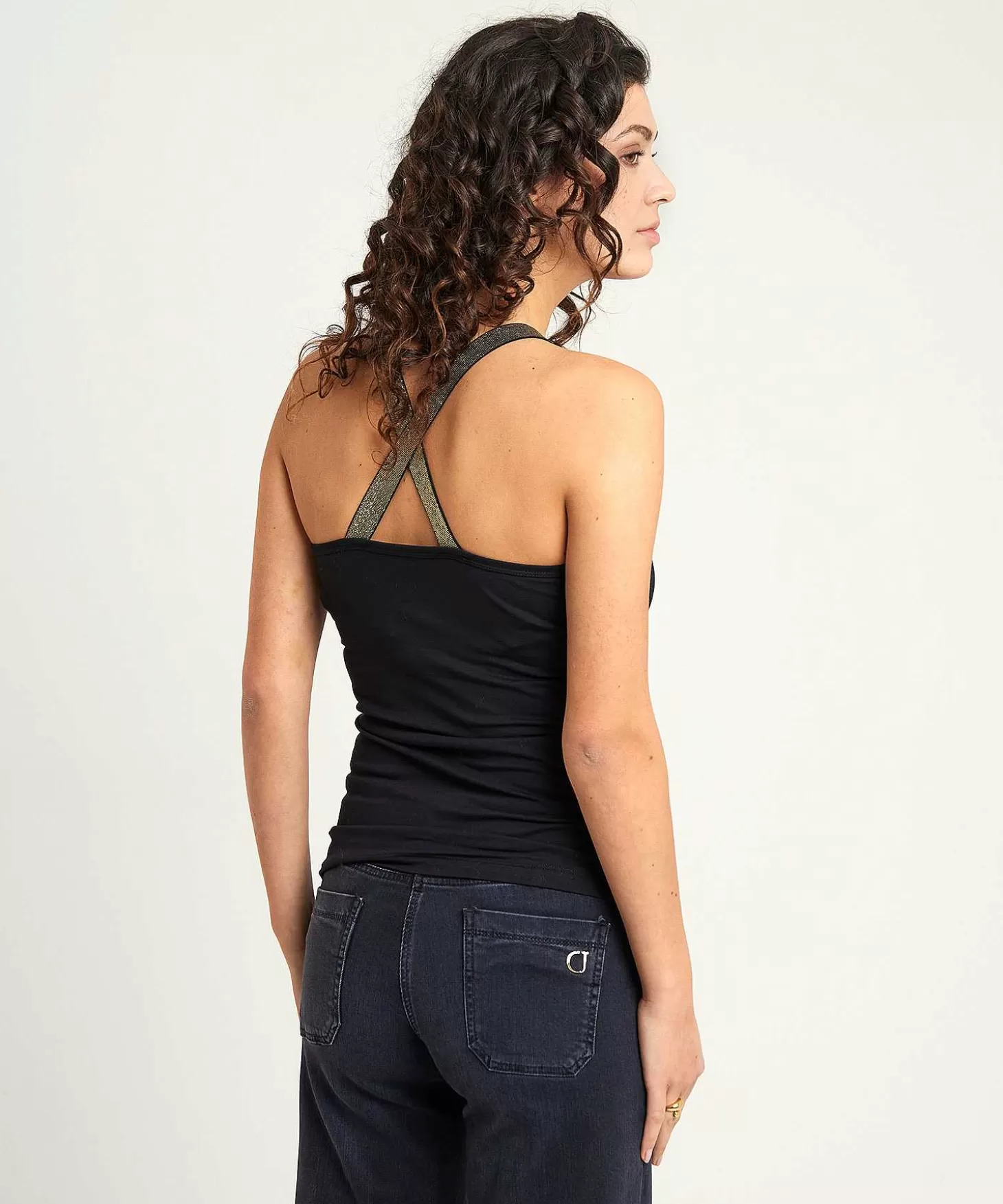 Dit Singlet Met Gekruiste Bandjes Is Een Ware Musthave Uit De Essentials Collectie. Ze Past Overal Onder En Bij En Dankzij Haar Lurex Geeft Ze Elke Outfit Sportieve Glamour. Van Streelzachte Elastische Katoen Met Een Minimalistische Belijning En In Allround Offwhite, Marine En Zwart Past Ze Overal Bij. Je Draagt Haar Onder Een Blazer, Vest Of Trui Met Een Pantalon, Jeans Of Plissérok. Samenstelling: 95% Katoen, 5% Elastan.