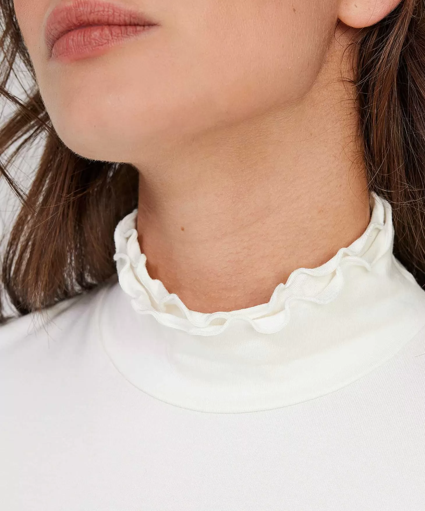 Dit Colshirt Met Roezels Is Niet Voor Niets Een Essential. In Aansluitend Stretchy Model Van Fijne Ribjersey En Met Een Dubbel Roezel Colletje En Boord (Lock-Afwerking) Geeft Dit Shirt Elke Outfit Speelse Vibes. Verkrijgbaar In Offwhite, Marine En Zwart Is Er Altijd Een Kleur Naar Jouw Smaak. Je Draagt Haar Boven Een Jeans Of Pantalon Met Sneakers Of Loafers (En Een Fun Fur Vestje). En Wat Dacht Je Van Onder Een Blazer, Vest Of Denim Jasje? Extra Pluspunt: Viscose Draagt Heerlijk En Blijft Mooi In Vorm. Samenstelling: 95% Viscose, 5% Elastan.