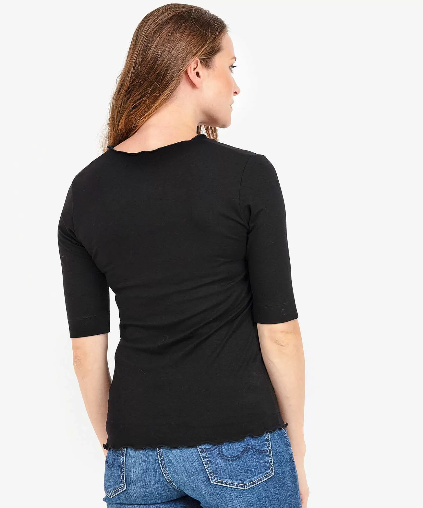 Met Het Essentials Shirt Heb Je Een Essentiële Musthave In Huis. Jouw Voorjaargarderobe-Capsule Is Niet Compleet Zonder Een Neutrale Basis Top. Less Is Definitely More En Dat Heeft Deze Top Uitstekend Begrepen. Dankzij Haar Eenvoudige Model, Zachte Offwhite Viscose, Decoratieve Lockrand Langs De Hals En Zoom En Mouwtjes Tot De Elleboog, Past Ze Overal Bij. Yes! Draag Haar Met Een Jeans, Een Pantalon, Knitwear Of Een Blazer. Voor Deze Top Is Niets Te Gek. Samenstelling: 95% Viscose, 5% Elastan.