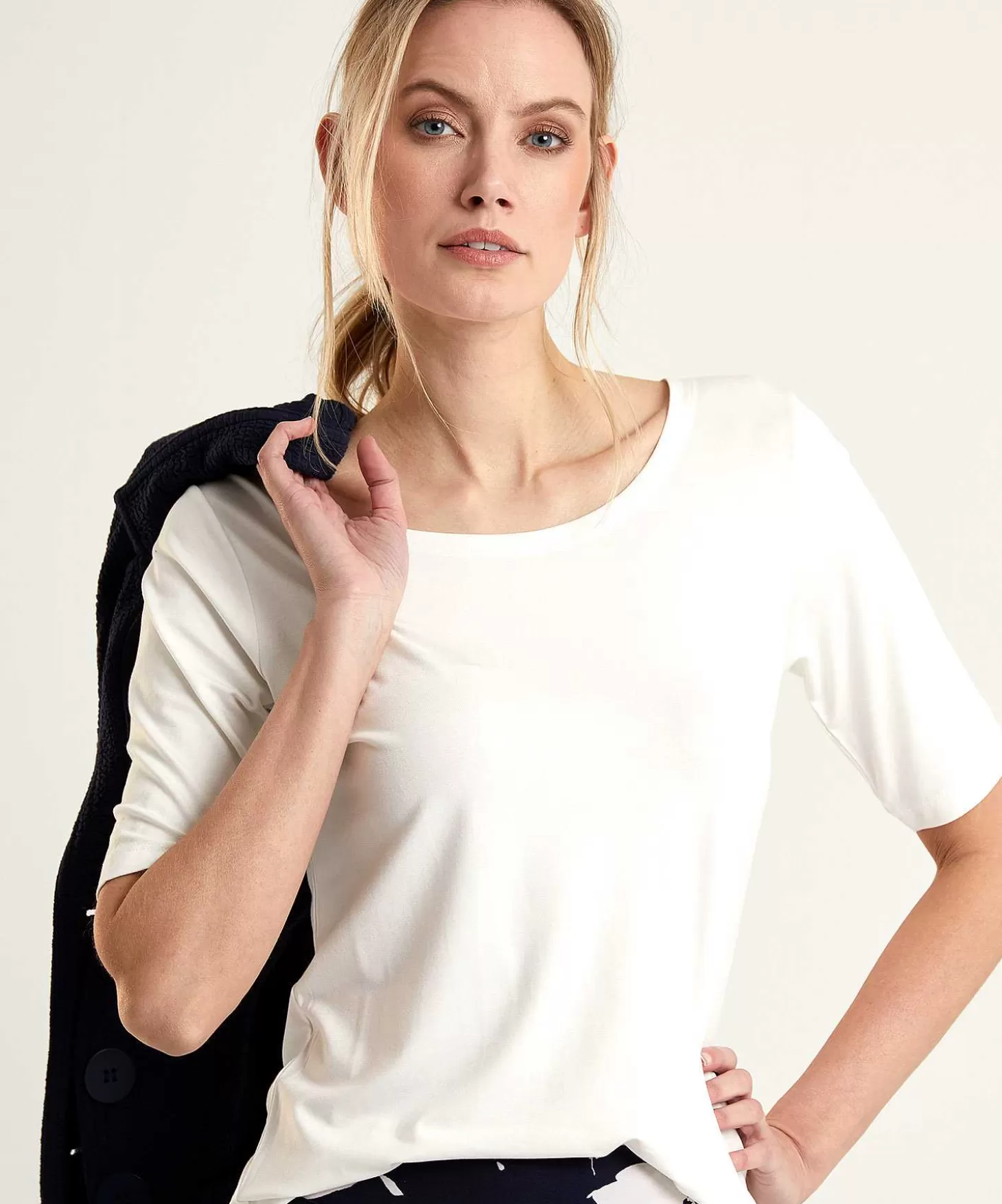 Dit Essentials Shirt In Summer Offwhite Mag Niet In Jouw Garderobe Ontbreken. Dankzij Haar Ronde Hals, Allround Kleur, Relaxte Feminien Model, Korte Mouw Én Luchtige Viscose Is Ze Een Echte Musthave. Je Draagt Haar Overal Onder Of Bij, Maar Ook Als Haar Fraaie Zelf Is Ze Niet Te Missen. Ze Heeft Een Comfortabele Stretch. Samenstelling: 95% Viscose, 5% Elastan.