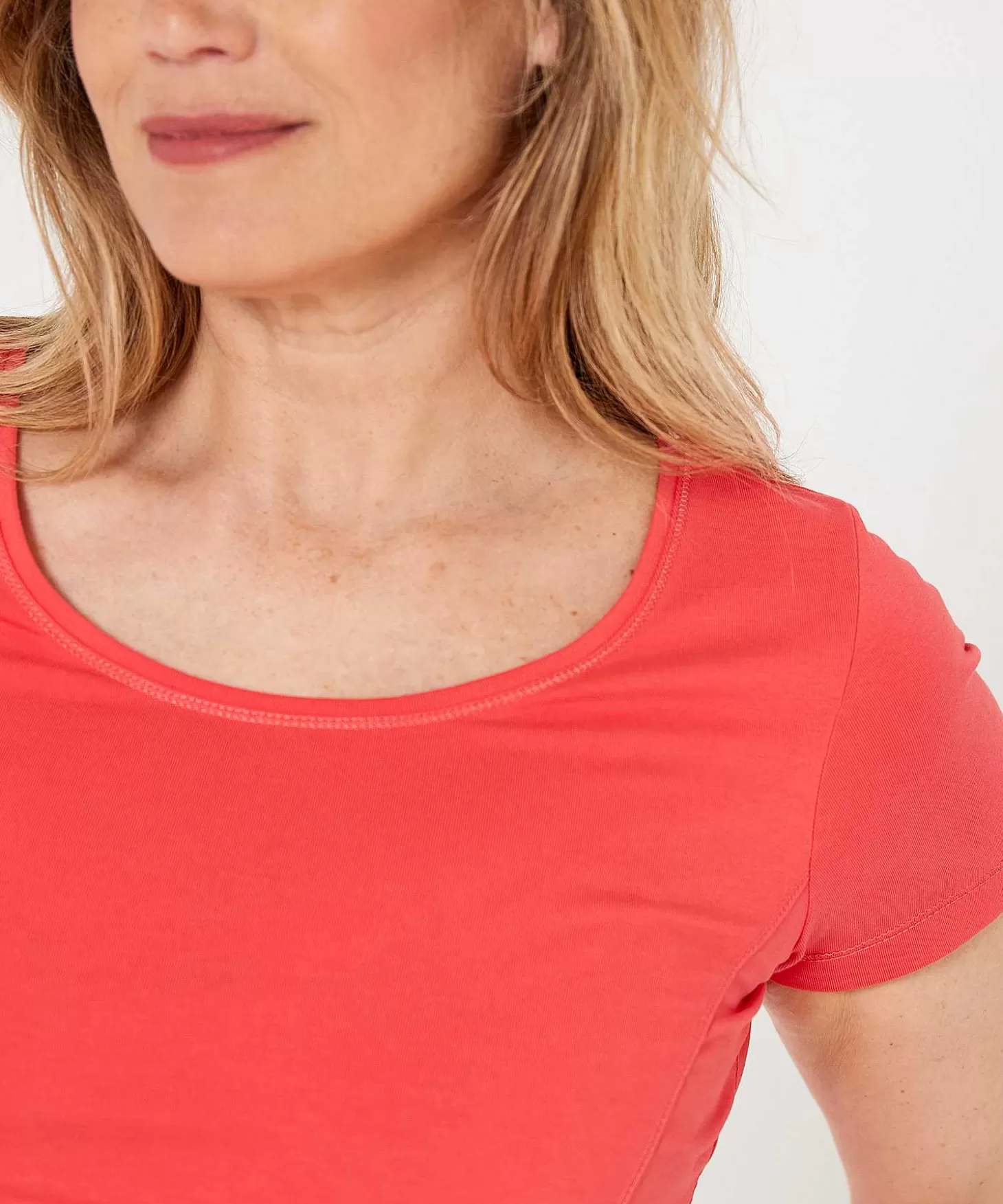 Uit De Essentials Collectie Is Dit Shirt A True Musthave. Zie Je Haar Feminien Model Met Wijde Hals, Figuurnaden (Klassiek ‘Prinsessenlijntje’) En Voel Je Haar Stretchy Zachte Kwaliteitskatoen? In Zomers Koraalrood, Fris Mint En Lentegroen Is Er Altijd Een Kleur Naar Jouw Garderobe En Ze Past Perfect Onder Een Blazer, Knitwear Of Een Denimjasje. Dankzij Haar Aansluitende Fit Draagt Ze Als Een Tweede Huidje En Samen Met Een Jeans, Maxi-Rok, Palazzo Of Shorts + Sneakers, Sandaaltjes Of Loafers Draag Je Haar Overal Heen. Deze Allrounder Mag Niet In Jouw Kledingkast Ontbreken Want Je Draagt Haar Het Jaar Rond. Welke Kleur(En) Kies Jij? Samenstelling: 95% Katoen, 5% Elastan.