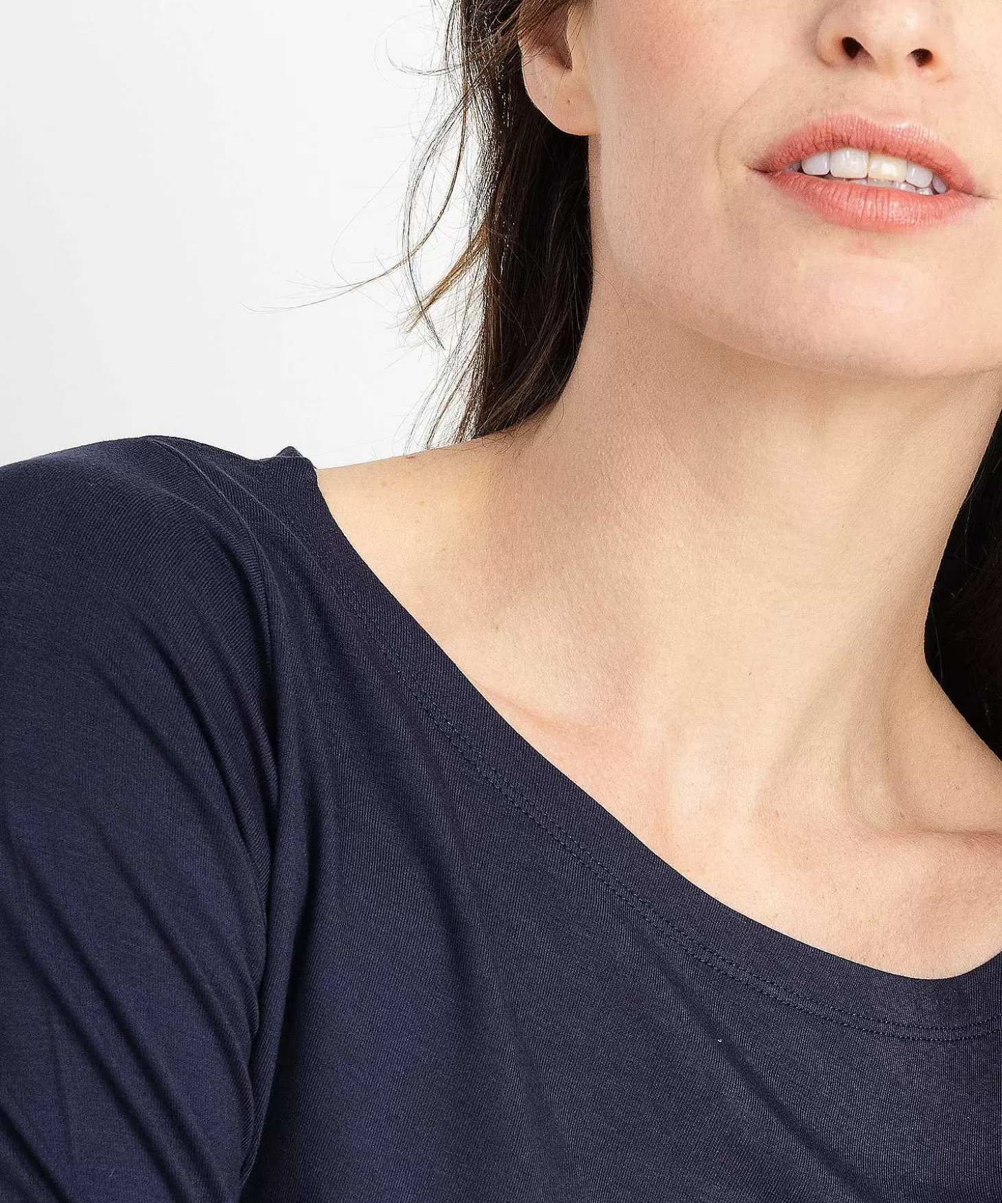 Uit De Essentials Collectie Is Dit Shirt Met Lange Mouw Een Essentiële Musthave. Haar Wijde Boothals, Lange Mouw En Zachte Stretchy Viscose Maken Haar Een Echte Doordrager. Sportief En Tijdloos Match Je Haar Met Alles Uit Jouw Garderobe En Ze Komt In Fraaie Multimatch Kleuren, Zoals Offwhite, Taupe, Marine En Zwart. Je Draagt Dit Aansluitende Model Gemakkelijk Onder Een Blazer, Denimjasje Of Vest, Maar Ook Als Haar Minimalistische Zelf Matcht Ze Uitstekend Met Een Pantalon, Printbroek, Maxi-Rok Of Jeans. Welk Kleurtje Kies Jij? Samenstelling: 95% Viscose, 5% Elastan.