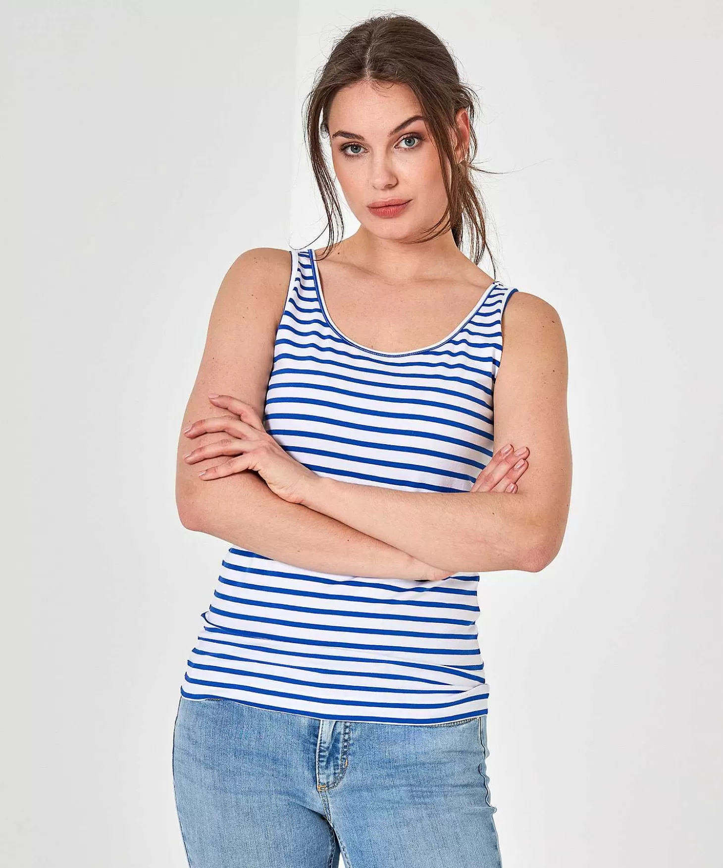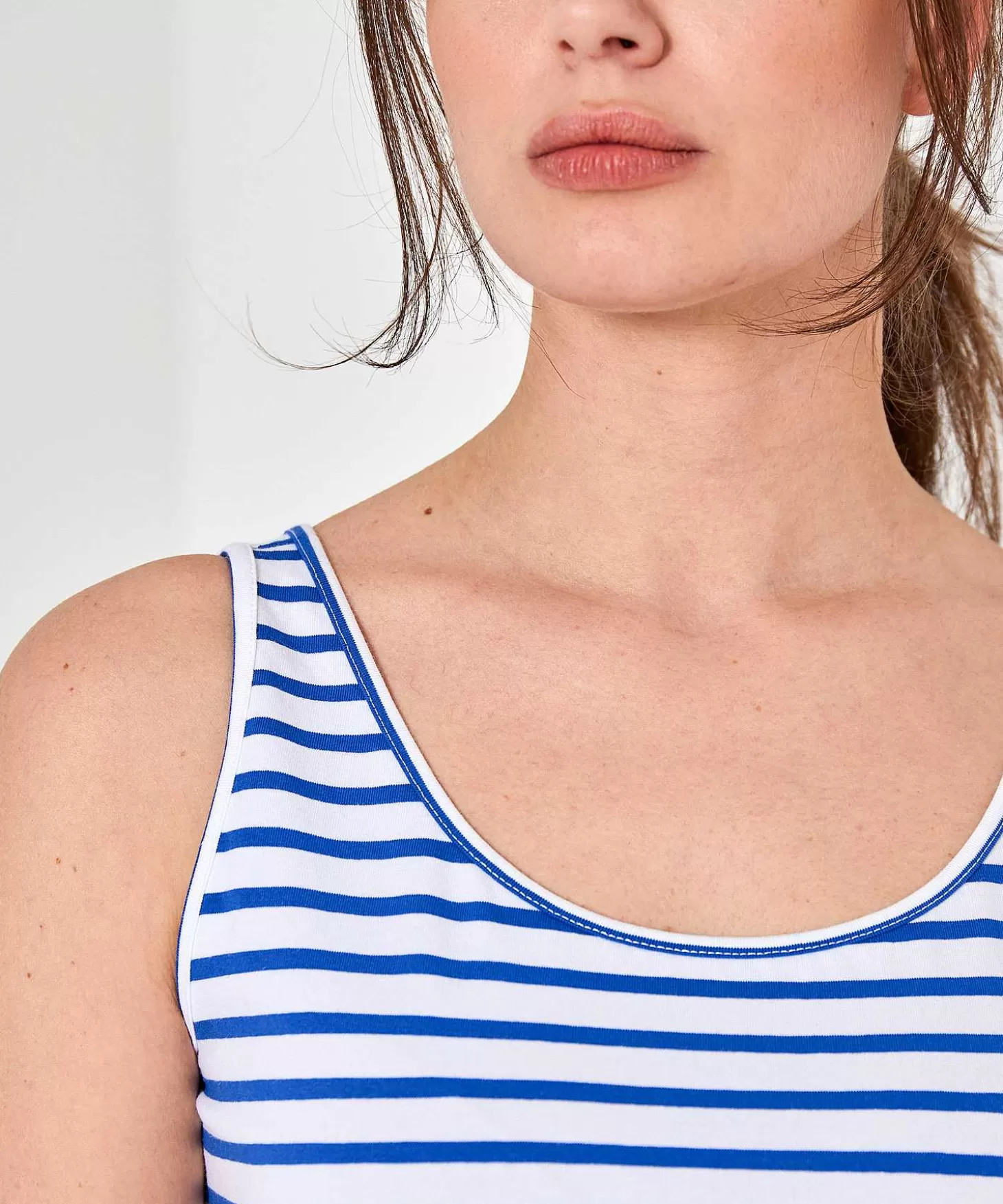 Met Deze Essentials Singlet Heb Je Altijd Een Streepje Voor. Zie Je Haar Bretonse Streep En Voel Je Haar Zachte Elastische Katoen? Met Haar Comfortabele Aansluitende Fit En Lengte Past Ze Onder Ieder Vest Of Blazer En Straks Bij Hoge Temperaturen Draag Je Haar Als Haar Fraaie Zelf. Samen Met Een Jeans, Pantalon, Jogger, Maxi-Rok Of Shorts + Loafers, Sneakers Of Sandaaltjes Ben Jij Altijd Op Je Maritieme Best. Ship Ahoy Sailorettes! Verkrijgbaar In Marine/Offwhite, Kobalt/Wit, Hemelsblauw/Offwhite En Koraal/Wit. Samenstelling: 95% Katoen, 5% Elastan.