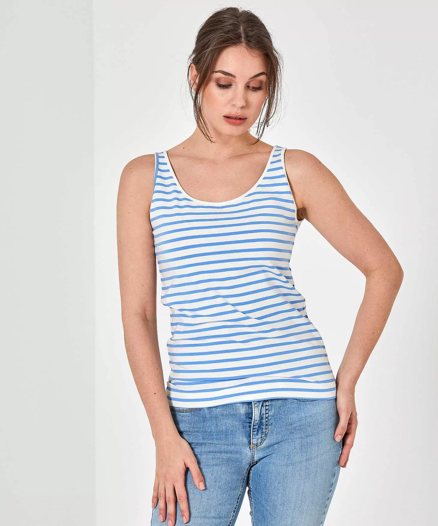 Met Deze Essentials Singlet Heb Je Altijd Een Streepje Voor. Zie Je Haar Bretonse Streep En Voel Je Haar Zachte Elastische Katoen? Met Haar Comfortabele Aansluitende Fit En Lengte Past Ze Onder Ieder Vest Of Blazer En Straks Bij Hoge Temperaturen Draag Je Haar Als Haar Fraaie Zelf. Samen Met Een Jeans, Pantalon, Jogger, Maxi-Rok Of Shorts + Loafers, Sneakers Of Sandaaltjes Ben Jij Altijd Op Je Maritieme Best. Ship Ahoy Sailorettes! Verkrijgbaar In Marine/Offwhite, Kobalt/Wit, Hemelsblauw/Offwhite En Koraal/Wit. Samenstelling: 95% Katoen, 5% Elastan.