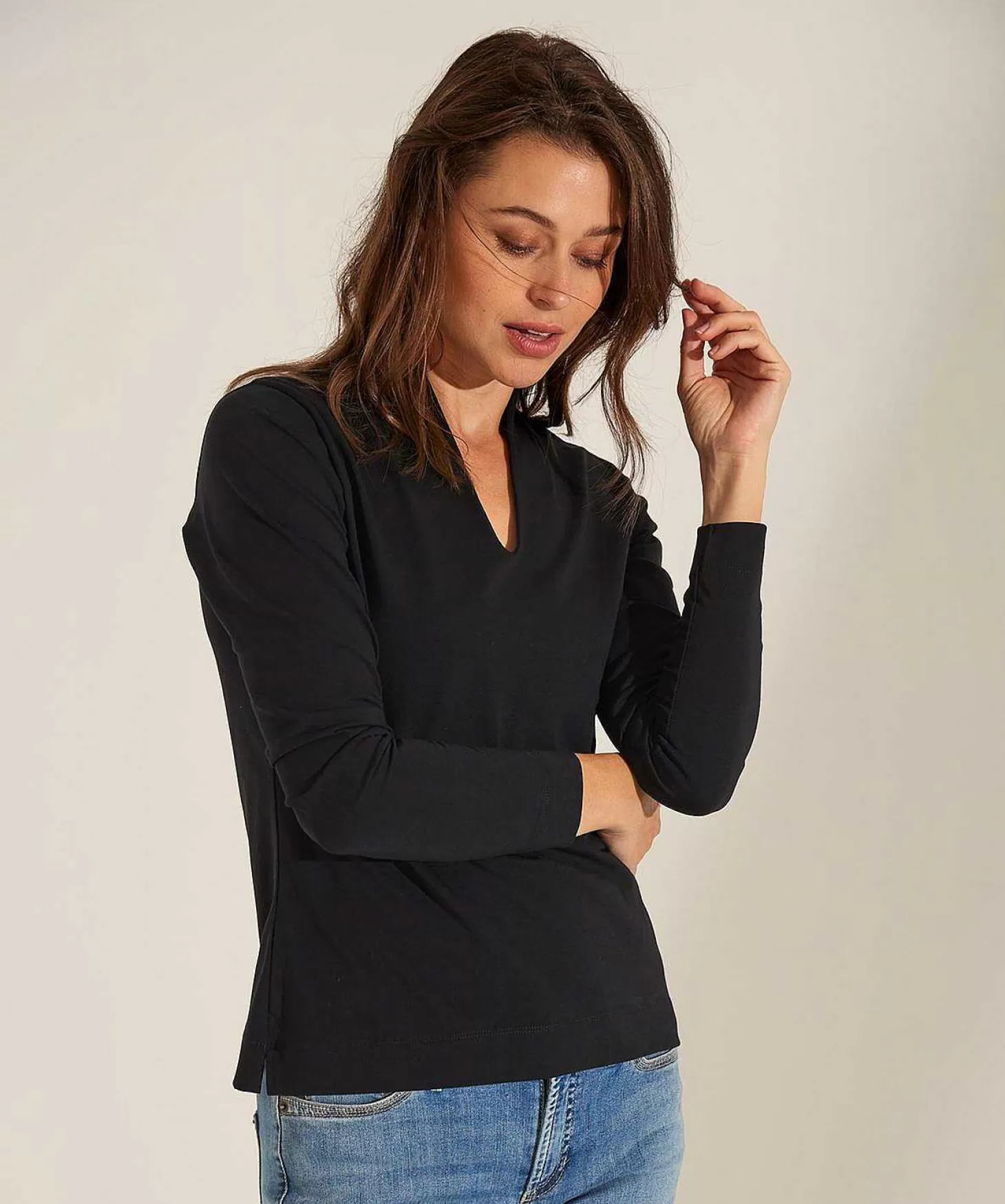 Een Onmisbare Basic Voor Je Garderobe – Dat Is Dit Tulpshirt Met Lange Mouw. Dankzij Het Heerlijk Dragende Katoen Met Een Vleugje Elastan Is Deze Top Multi Inzetbaar. Opvallend Aan Dit Shirt Zijn De Tulpvormige Gevoerde Halslijn, De Lange Mouwen En De Zijsplitjes. Need I Say More? Ja, Het Achterpandje Is Ook Nog Eens Een Tikkeltje Langer. Combineer Deze Beauty Met Een Jeans, Een Colbertje Of Een Leuke Printbroek. De Mogelijkheden Zijn Eindeloos En Dit Shirt Draag Je Het Jaar Rond. Verkrijgbaar In Zwart, Marine, Offwhite, Biscuit En Camel. Samenstelling: 95% Katoen, 5% Elastan.