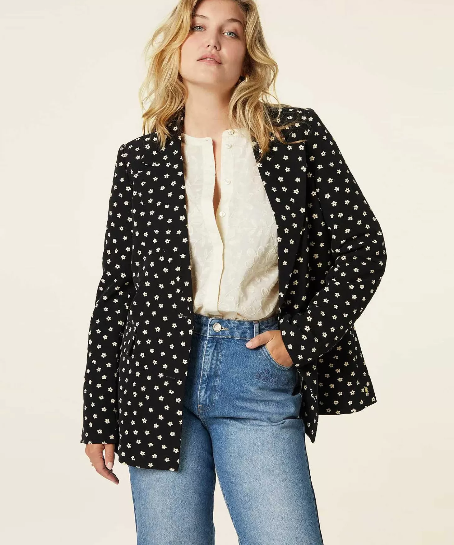 Blazer ‘Paul’ Uit De Collectie Van Fabienne Chapot, Staat Voor Vrouwelijke Elegantie Verstopt In Een Stijlvolle Blazer Voorzien Van Een Grandioos Subtiele Print. Deze Tijdloze Blazer Heeft Een Getailleerde Fit En Valt Net Wat Langer Tot Over De Heup. Ze Heeft Een Klassieke Kraag En Is Voorzien Van Logoknopen Aan De Mouwen En Ze Sluit Met Twee Knopen. Twee Fake Klepzakken Maken Het Geheel Af. De All Over Print Van Kleine Offwhite Bloemetjes Op Een Zwarte Ondergrond Lijkt Door Te Lopen In De Off-White Voering, Die Heeft Namelijk Ook Een Geweldige Bloemenprint. Draag Blazer ‘Paul’ Gecombineerd Met Een Blouse, Bijvoorbeeld Op Een Jeans Of Zorg Dat Je De All Over Look Doortrekt In De Rest Van Je Outfit, Door Samen Met Wide Leg Broek ‘Puck’ Te Gaan Voor Een Compleet Pak In Bloemetjes. Kies Dan Voor Een Off-White Blouse Met Mooie Mouwen, Die Net Even Onder De Mouwen Van Je Blazer Vandaan Komen. Samenstelling: 88% Gerecycled Polyester, 12% Elastan. Voering: 100% Polyester.