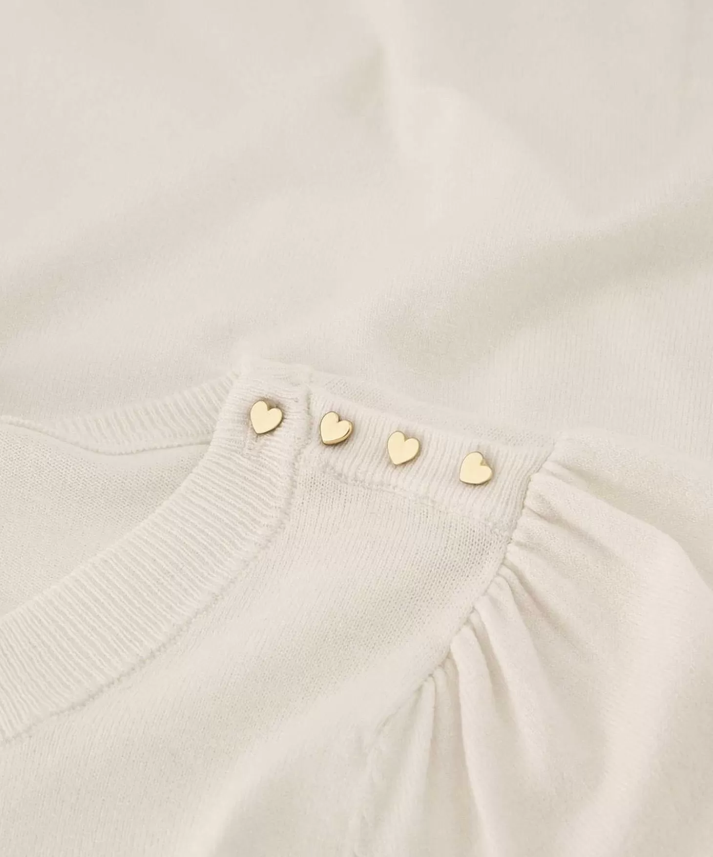 Verrassend En Lieflijk Zijn De Details Bij Fabienne Chapot! In Dit Roomwitte Truitje Milly, Wordt Dat Zichtbaar In De Ronde Hals Die Op De Linkerschouder Voorzien Is Van Vier Goudkleurige Hartjes-Knoopjes. Het Truitje Is In Een Ultrafijn Breisel Gemaakt En Heeft Een Ronde Hals En Korte Mouwtjes. De Geplooide Mouwinzet, Zorgt Voor Een Poffend Effect Op De Schouder. Subtiel Is Er Bij Deze Mouw Een Roezeltje Aangebreid. Draag Dit Truitje Op De Sierlijke Rokken Uit Deze Collectie, Maar Draag Ook Gerust Op Je Favoriete Jeans Of Denim Skirt. Samenstelling: 72% Viscose, 28% Polyester.