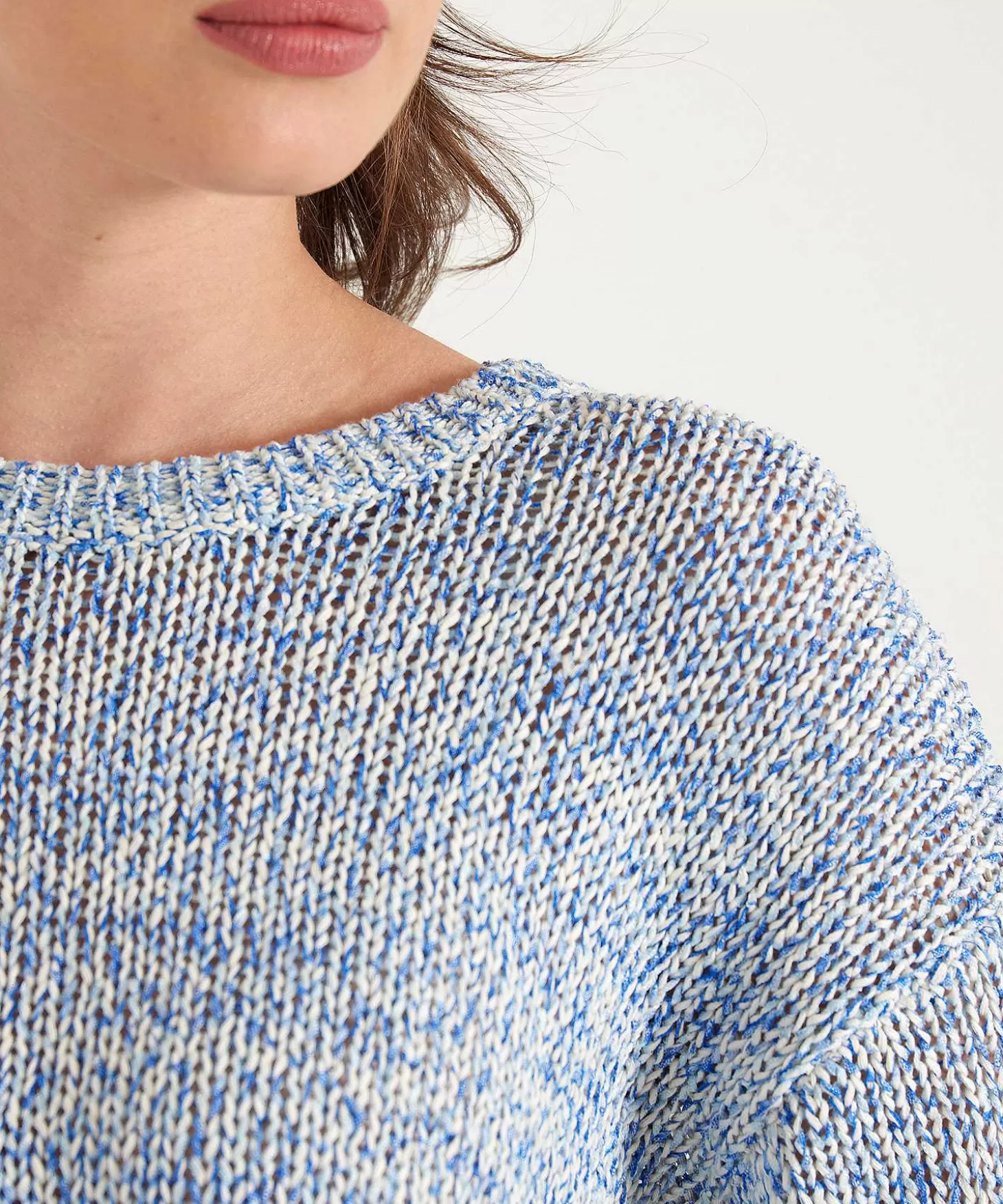 Dit Gemêleerde Giulia E Tu Truitje Wordt Jouw Nieuwe Favoriet. Wat Een Sportief Model Met Haar 3/4E Mouw En Losjes Gebreide Lintgaren In Blauw/Lichtblauw/Offwhite Of Mauve/Koraal/Abrikoos/Offwhite. En Dan Zit Er Ook Nog Een Glansje In Het (Lint)Garen Verstopt – We Love This!. Draag Dit Truitje Met Een Jeans, Pantalon Of Printbroek, Over Een Witte Blouse, Een Shirt Of Een Hemdje. Sneakers, Loafers Of Laarsjes Erbij En Je Bent Seizoenlang Fashionable En Blij. Samenstelling: 57% Katoen, 43% Polyester.