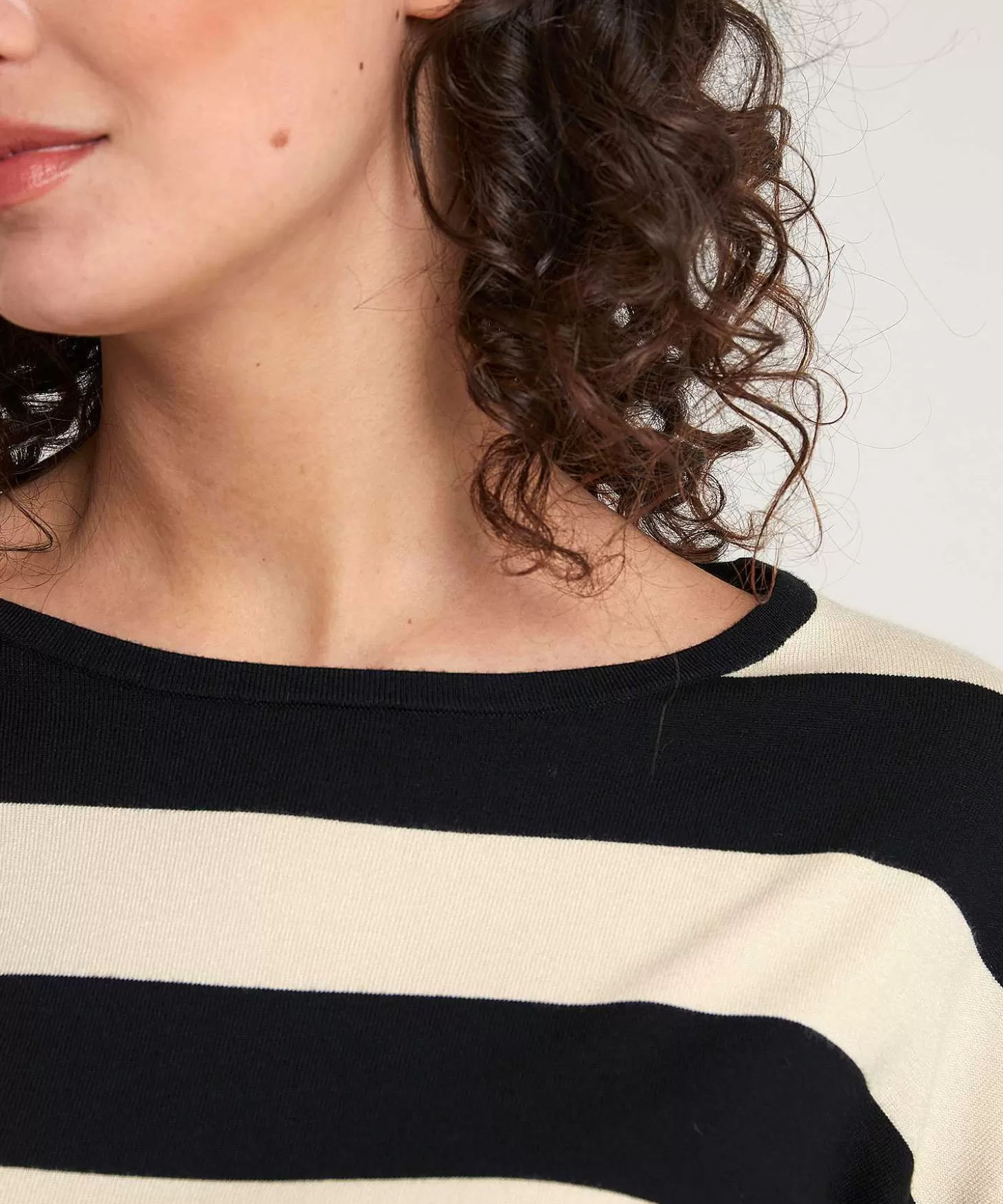 Dun Gebreid En Met Sportieve Streep Is Dit Giulia E Tu Truitje Een Hele Fraaie. Zie Je Haar Ronde Hals, Zwarte Strepen …