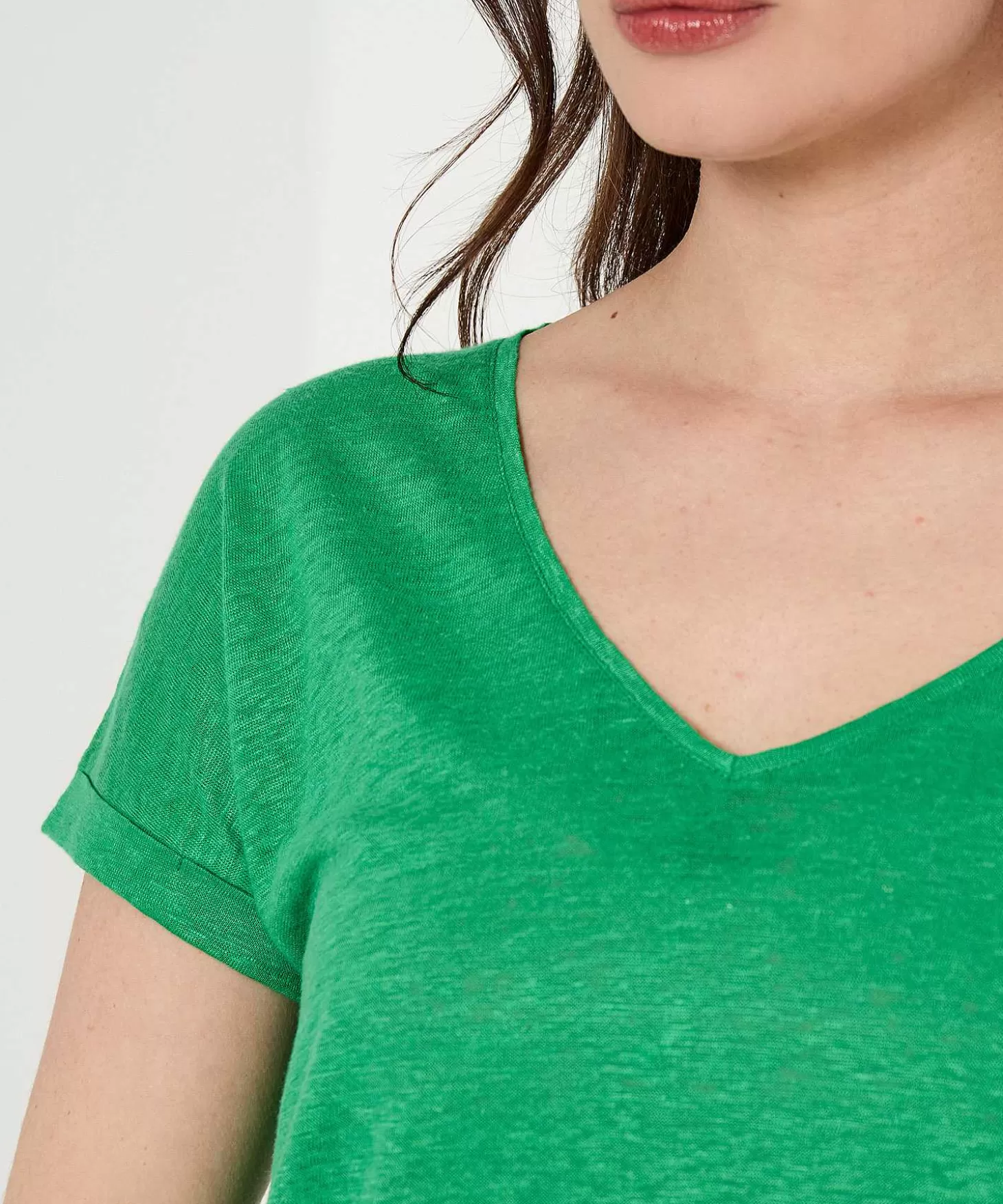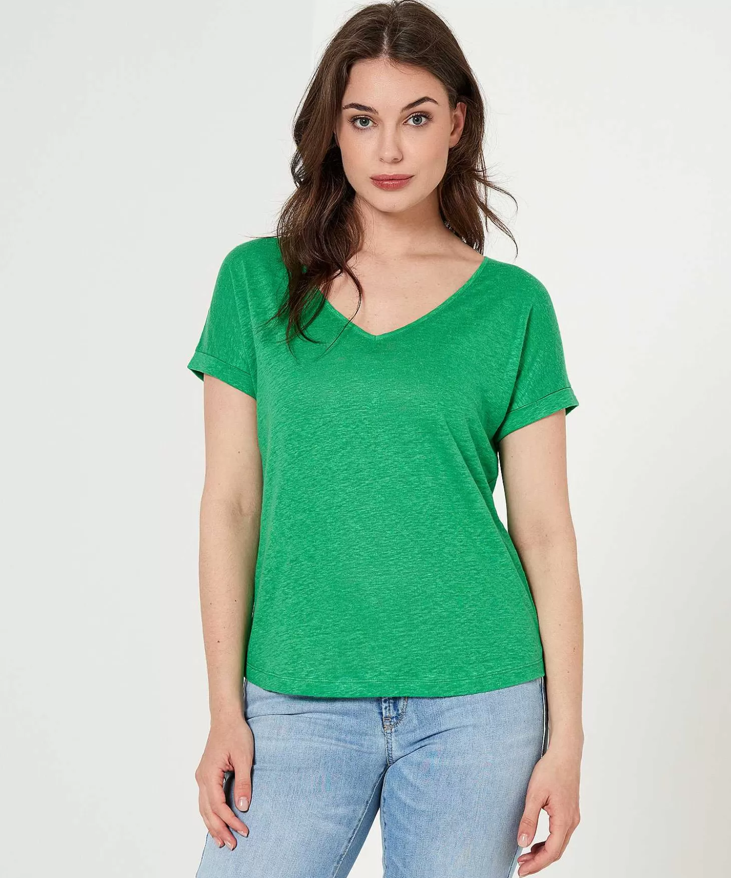Luchtig In Materiaal & Model Wordt Dit Linnen Giulia E Tu Shirt Jouw Nieuwe Favoriet. Voel Je Haar Rijke Linnen In Luchtig Weefsel (Met Een Fijn Werkje) En Zie Je Haar Wijde V-Hals, Korte Aangeknipte Mouwtje Met (Vaste) Omslag En Ronde Zoom? Verkrijgbaar In 3 Snoeperige Kleurtjes (Koraalrood, Roze En Groen) Is Er Altijd Een Kleurtje Naar Jouw Garderobe En Modehart. Draag Haar Met Een Jeans En Sneakers Voor Een Sportieve Look, Maar Ook Met Een Palazzo Of Lange Rok + Sandaaltjes In Ton Sur Ton Tinten Ben Je Boho Op Je Best. Deze Classic T Mag Niet In Jouw Kledingkast Of Koffer Ontbreken, Welk Kleurtje Kies Jij? Samenstelling: 100% Linnen.