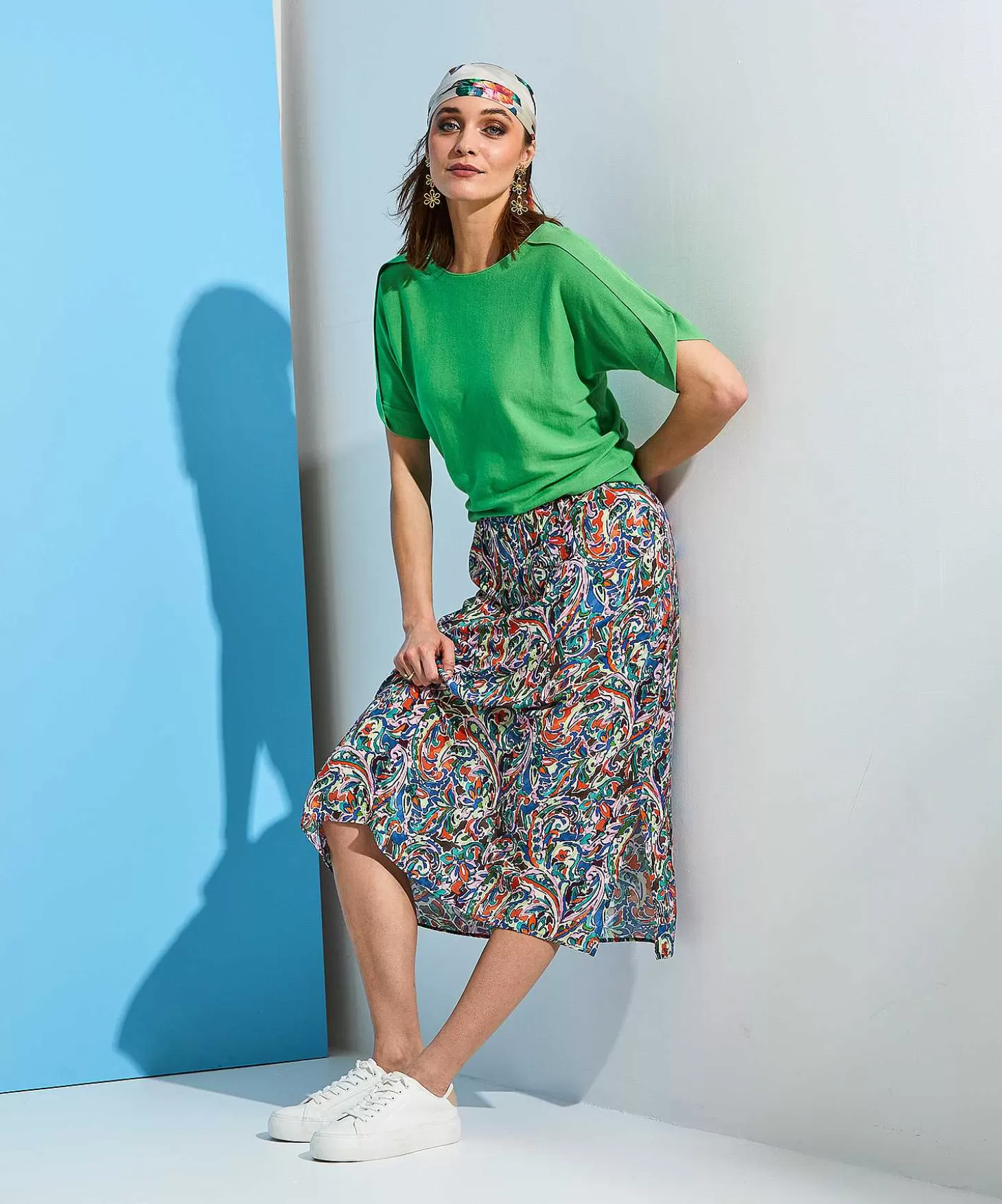 Van Soepele En Dunne Viscose Is Deze Giulia E Tu Rok In Multi Paisley De Perfecte Zomerrok. Haar Materiaal Is Superzacht En Ze Danst Om Je Lichaam. Met Haar Kleurrijke Aquarel Paisleyprint, Elastische Tailleband, A-Lijntje En Zijsplit Draagt Ze Net Zo Relaxt Als De Zomer Is Bedoeld. Dit Model Valt Halverwege De Kuit En Past Bij Veel Uit Jouw Kledingkast.
