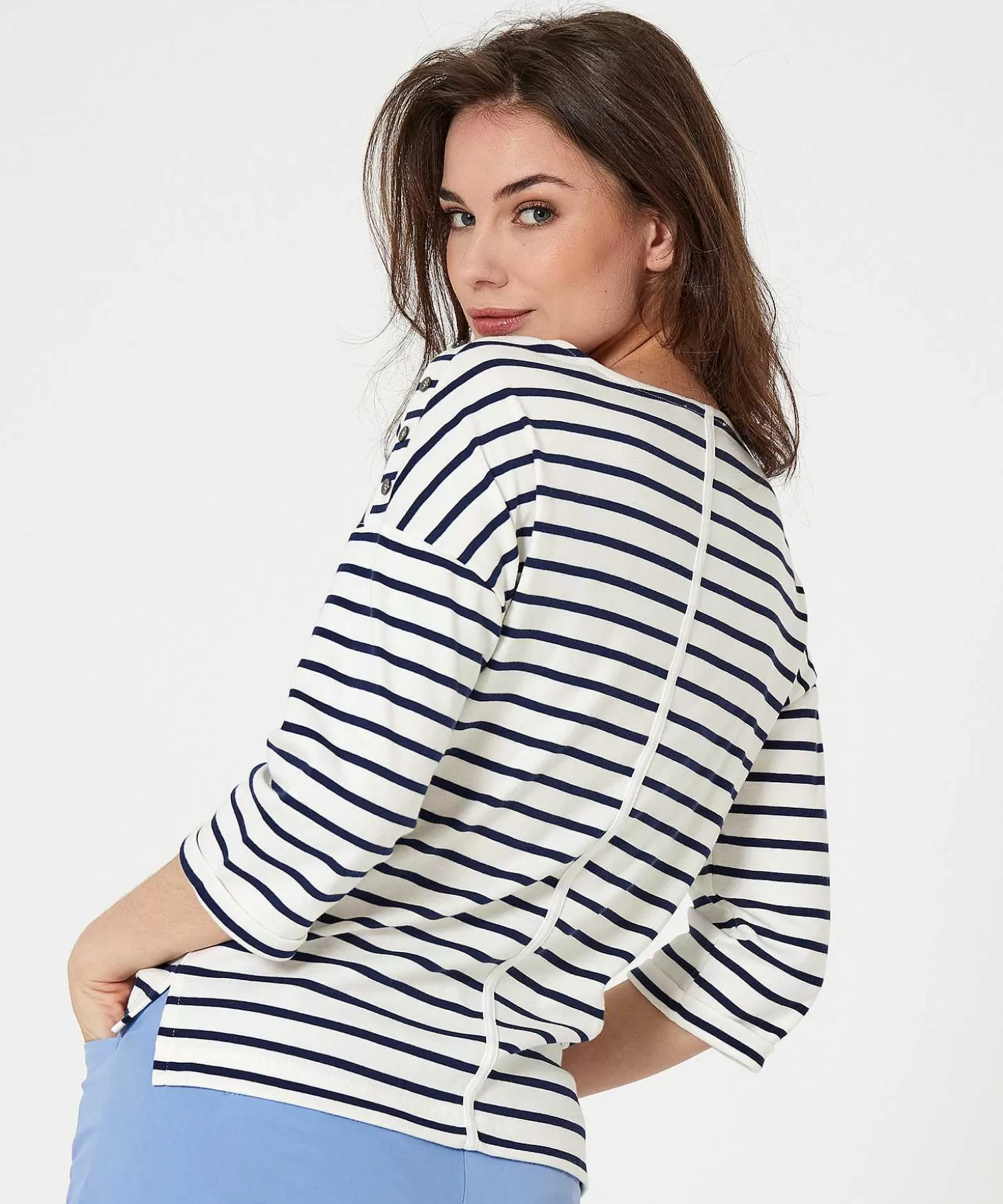 GIULIA E TU Shirt Bretonse Streep Knoopjes Fashion